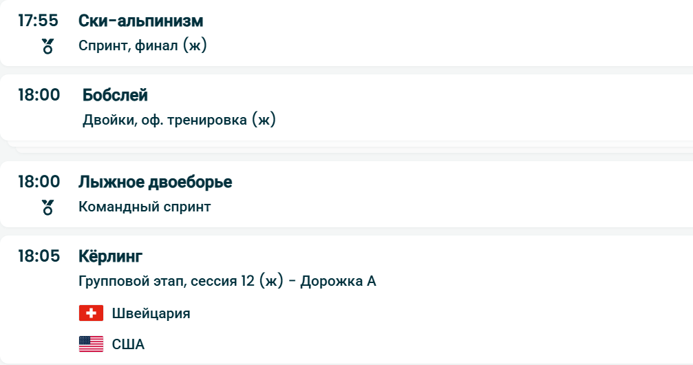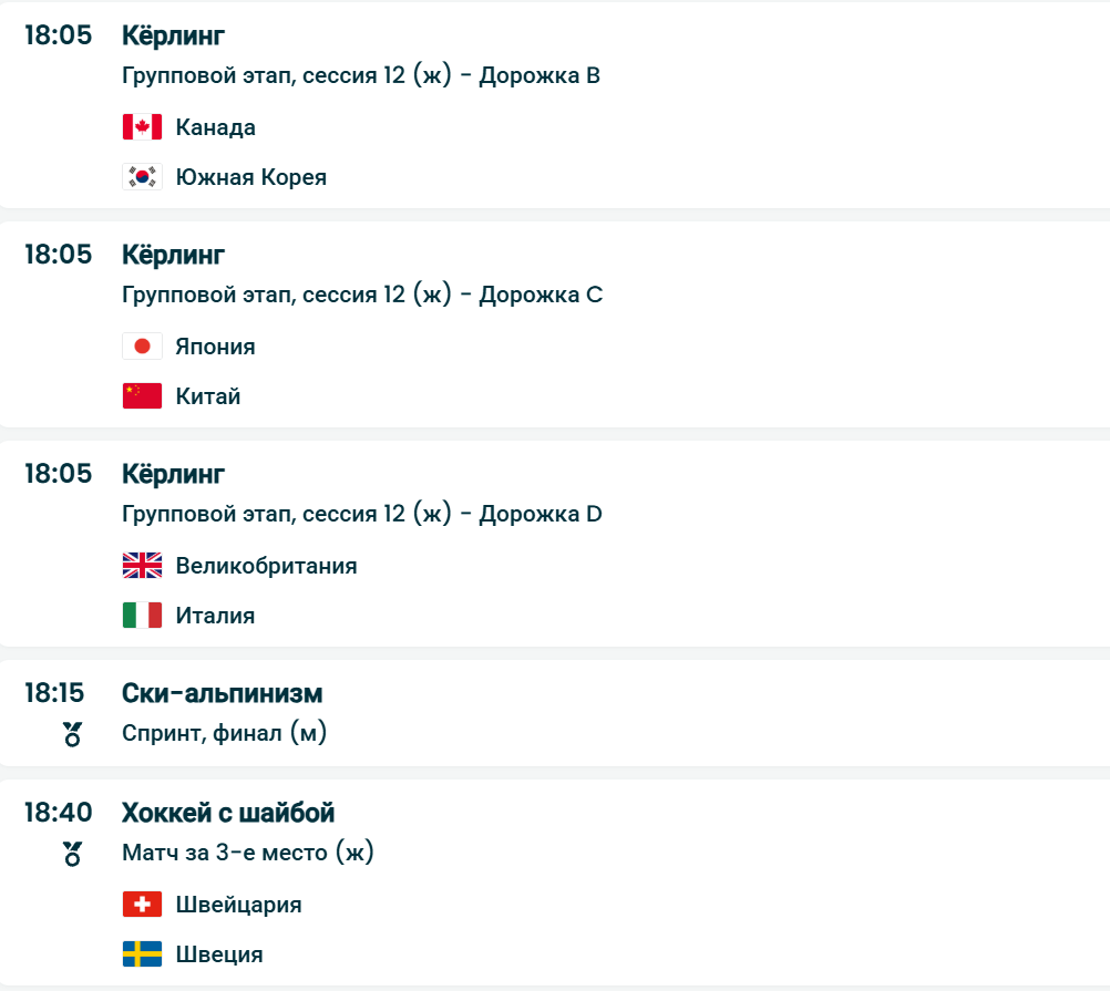 19 февраля на Олимпиаде-2026 в Милане и Кортине-д'Ампеццо будут разыграны семь комплектов медалей, сообщает Спорт Шредингера.