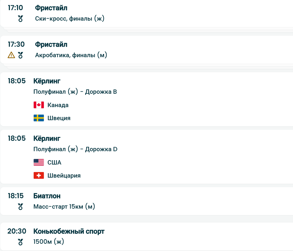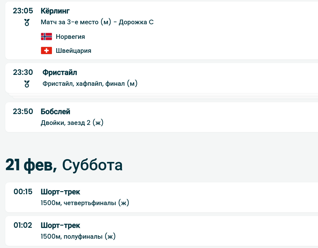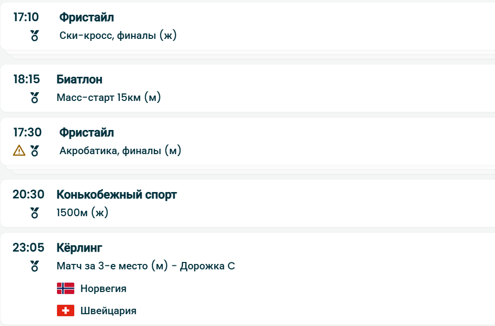 20 февраля на Олимпиаде-2026 в Милане и Кортине-д'Ампеццо будут разыграны семь комплектов медалей, сообщает Спорт Шредингера.