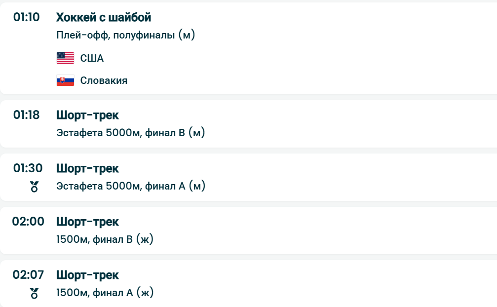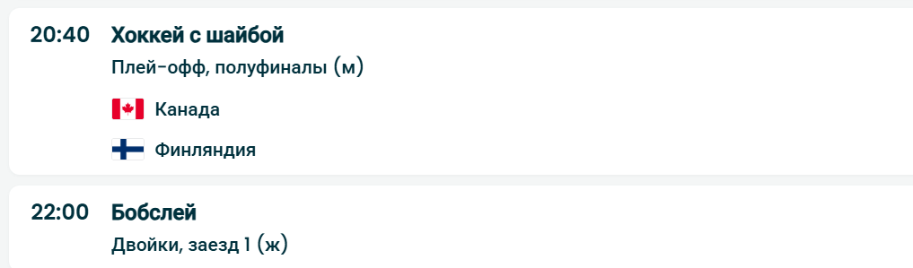 Полная программа соревнований Олимпиады-2026 на 20 февраля