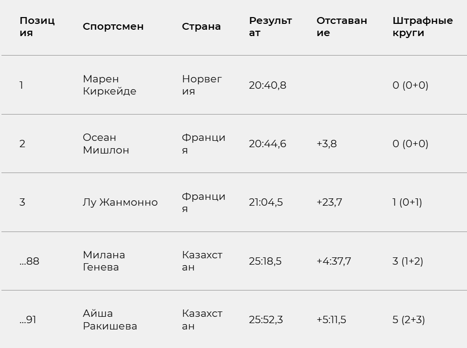 Милана Генева заняла 88-е место, а Айша Ракишева - последнее, 91-е, место.
