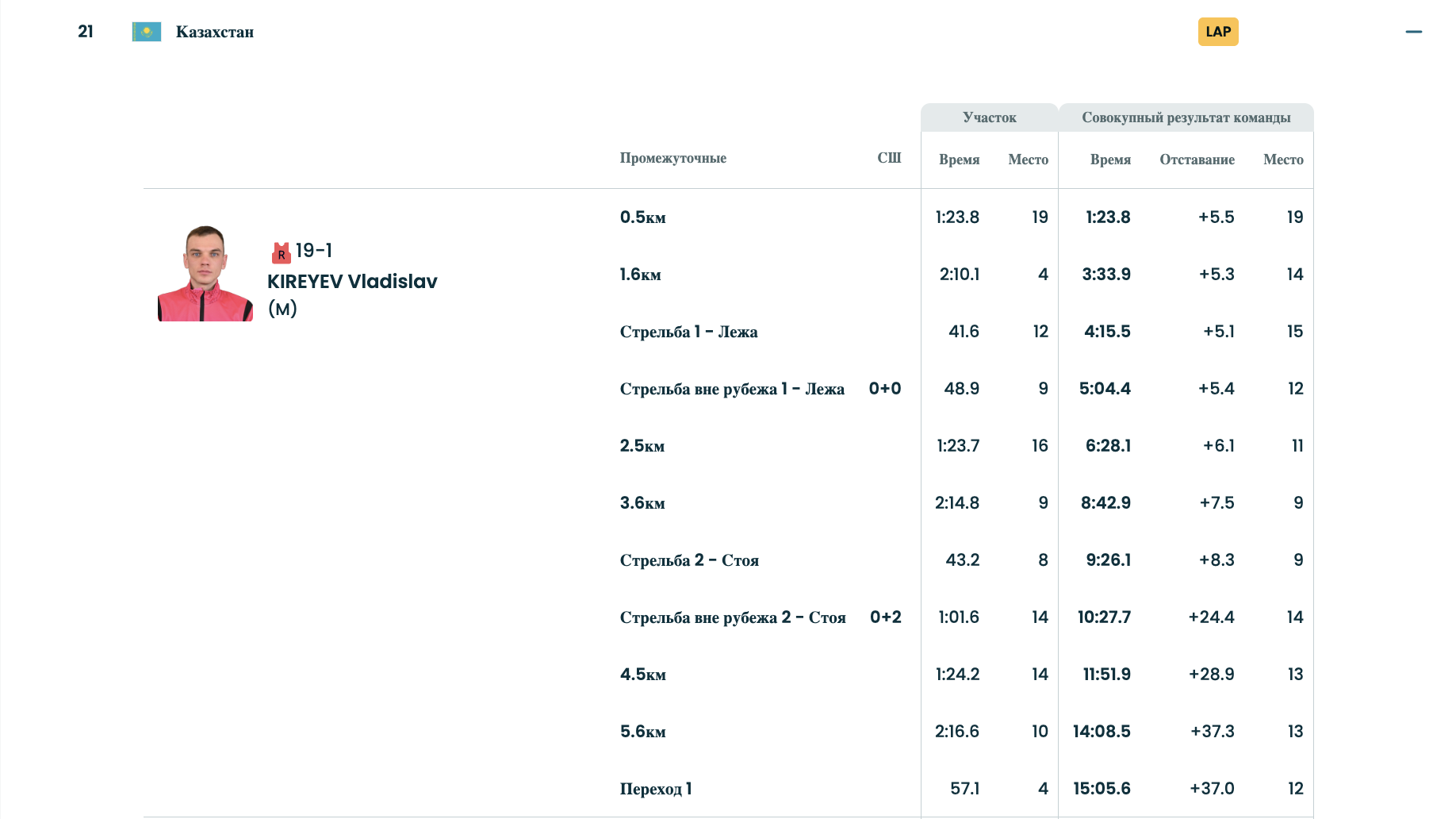 А в смешанной эстафете в биатлоне Казахстан стал последним - в гонке участвовала 21 команда ... Причем на втором этапе Казахстан был на одной из отметок даже на 10-м месте.
