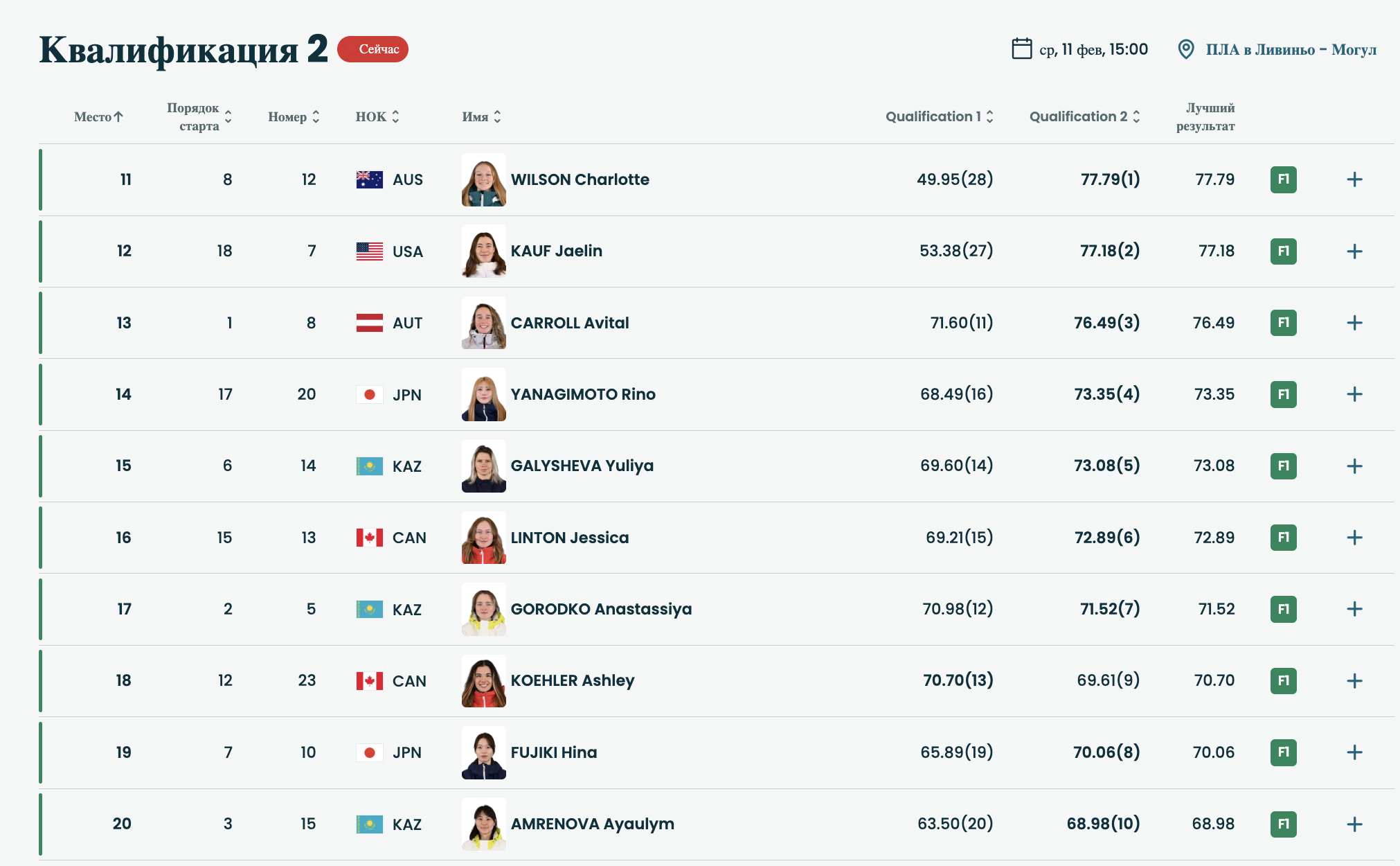 ✅ Юлия Галышева, Анастасия Городко и Аяулым Амренова продолжают борьбу за медали Олимпиады-2026 во фристайл-могуле!