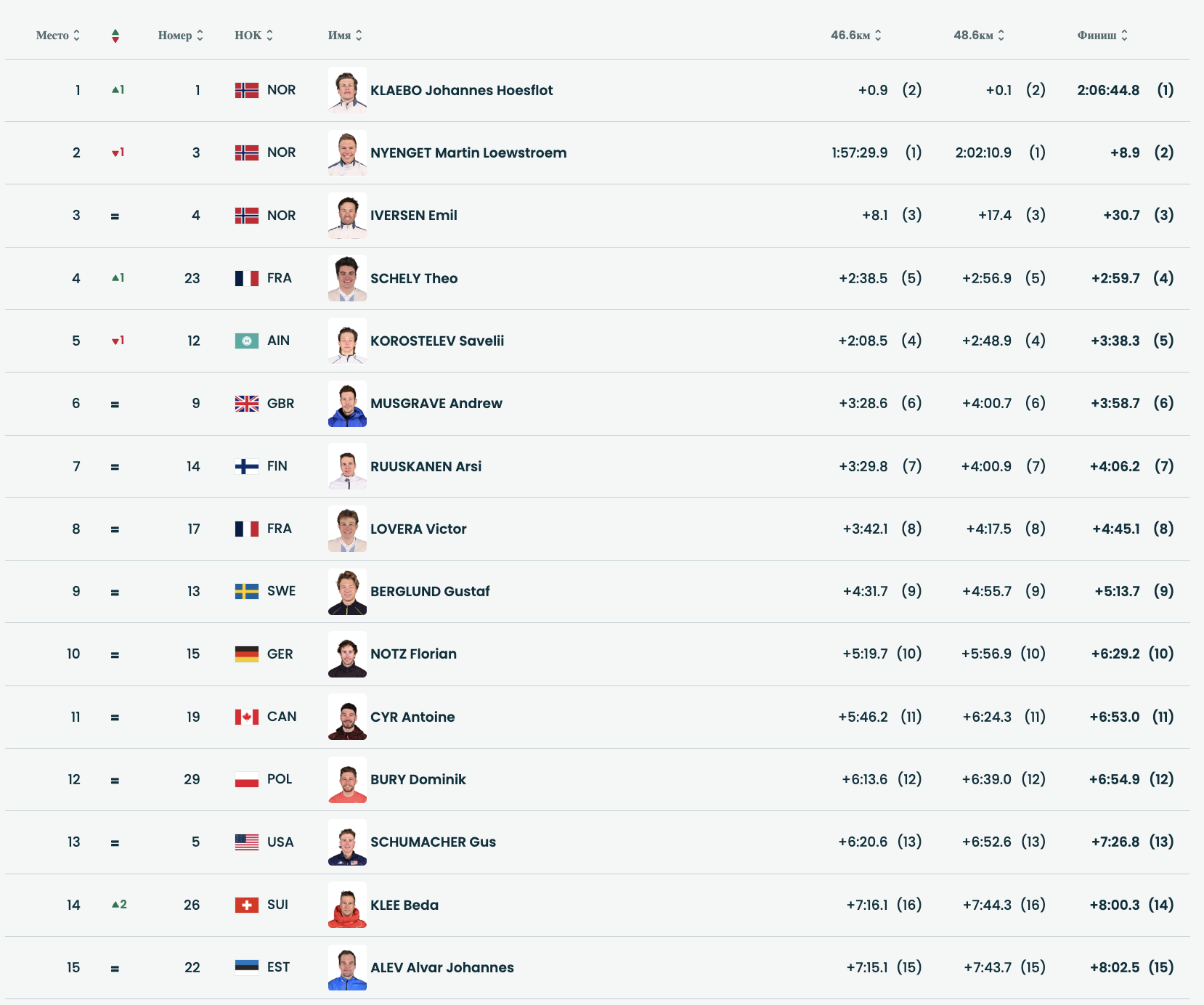 Благодаря этому результату норвежец укрепил статус самого титулованного спортсмена в истории зимних Олимпийских игр и стал главным героем турнира в соревнованиях по лыжным гонкам. А с учётом летних Игр Клебо уступает только легендарному пловцу Майклу Фелпсу из США.
