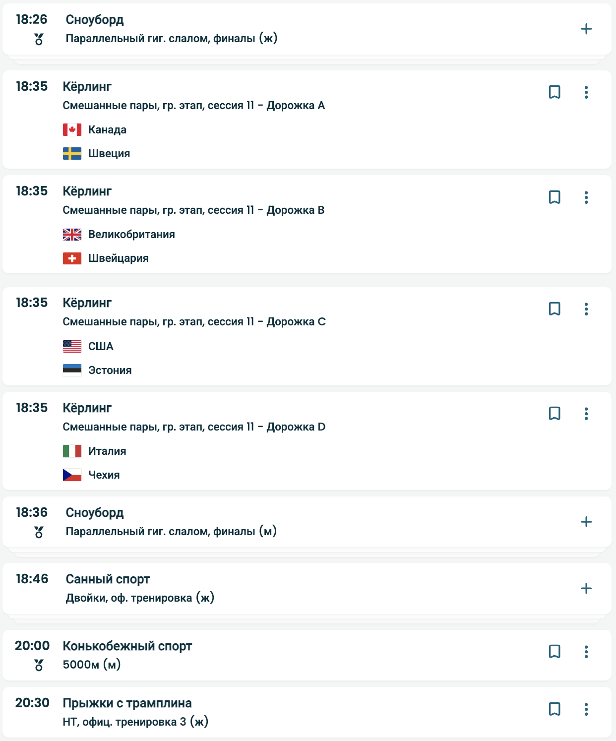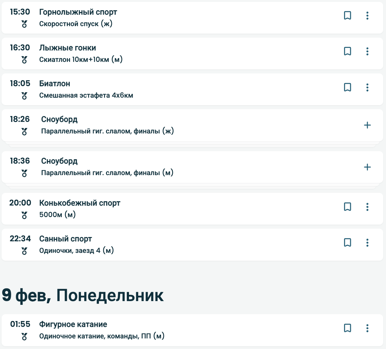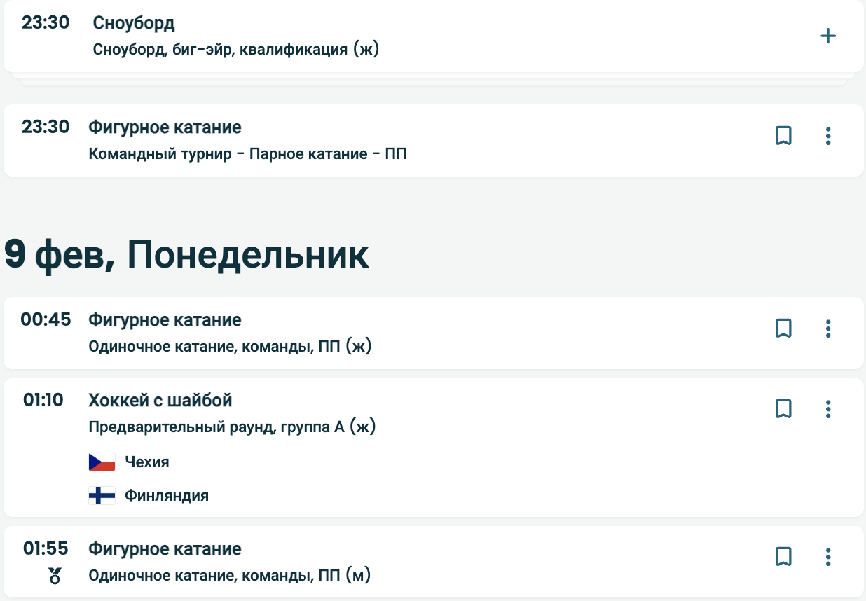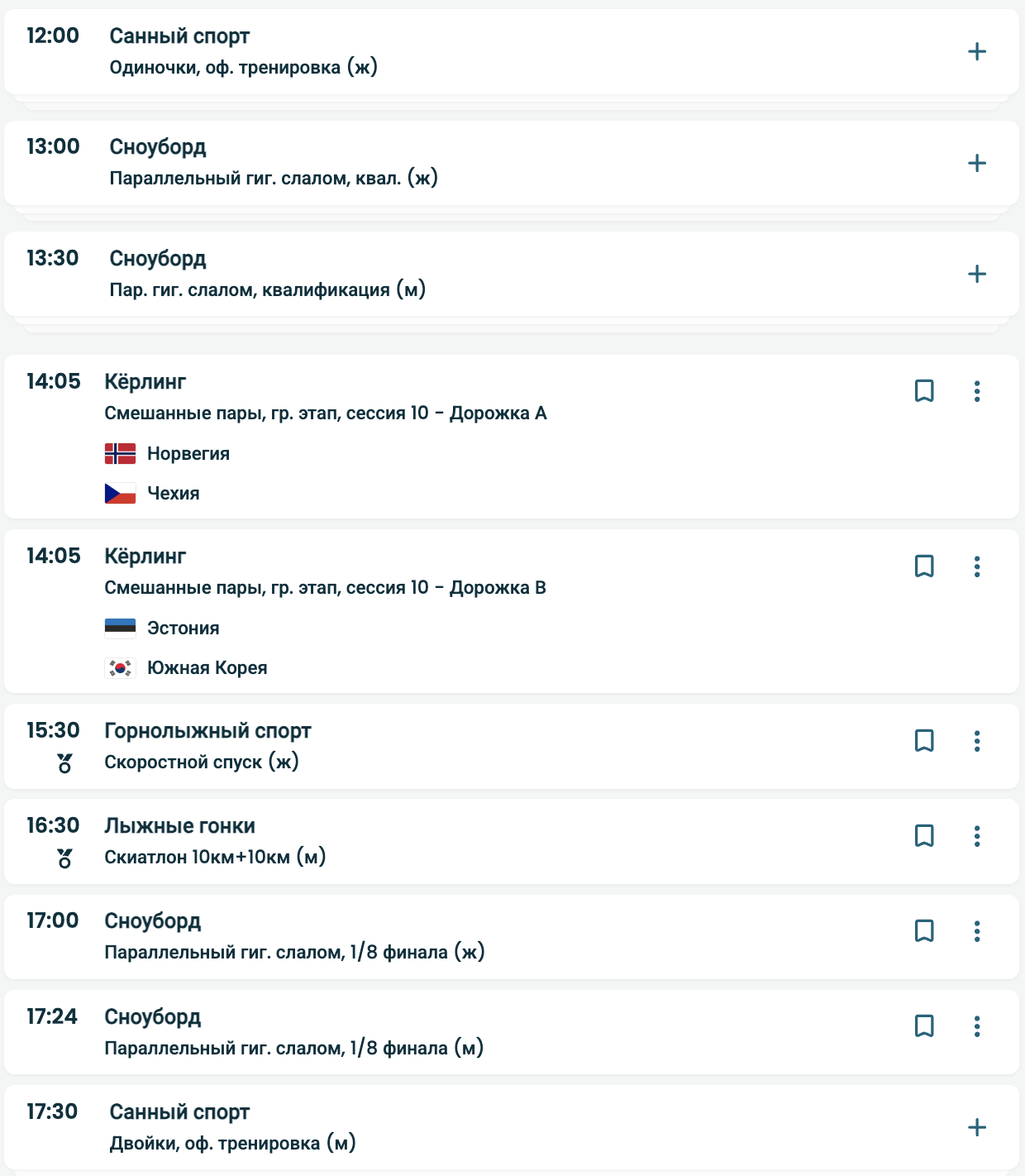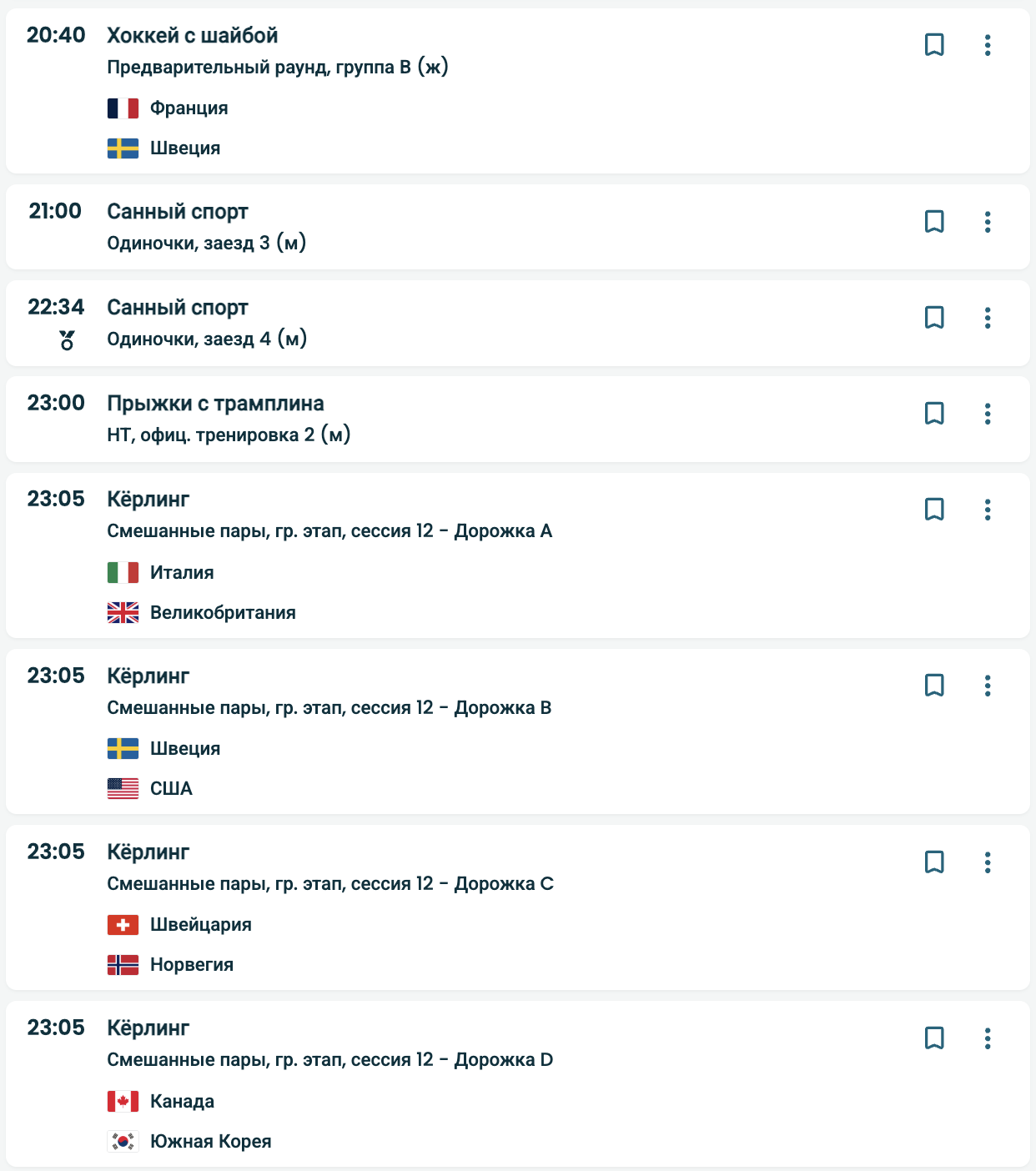 Полная программа соревнований Олимпиады-2026 на 8 февраля