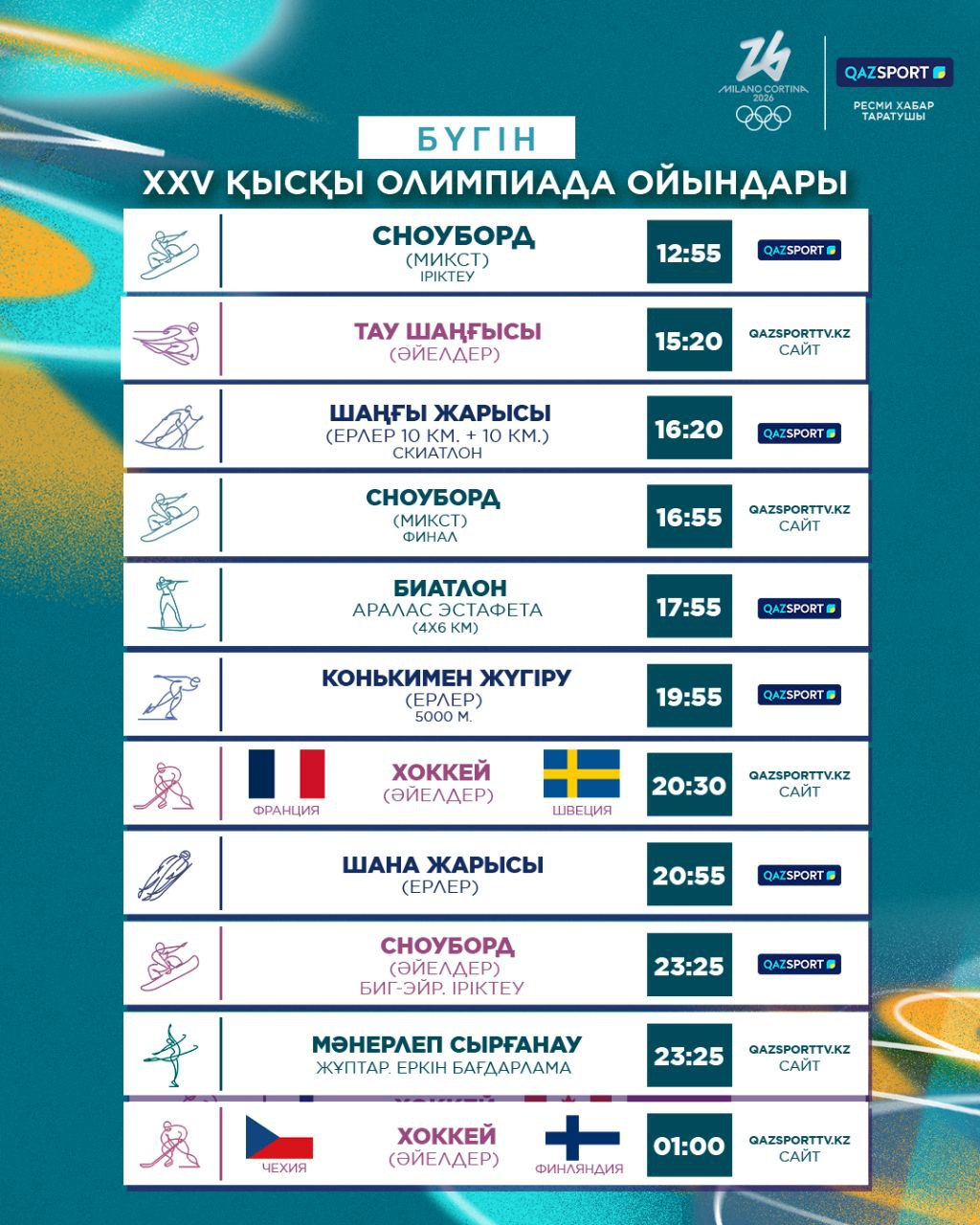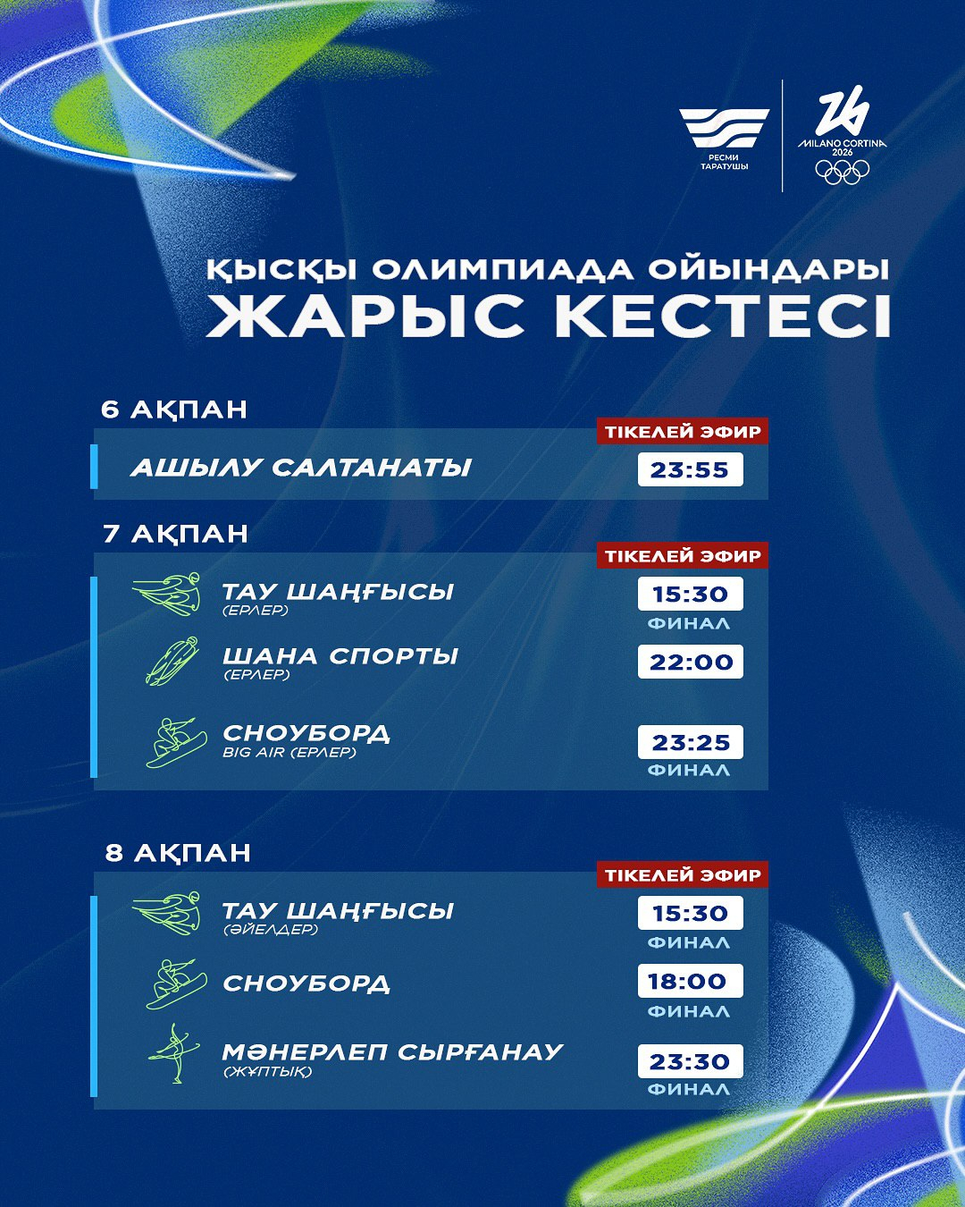 - В прямом эфире главные зимние старты четырехлетия покажут телеканалы Qazaqstan, Qazsport, "Хабар" и Jibek Joly.