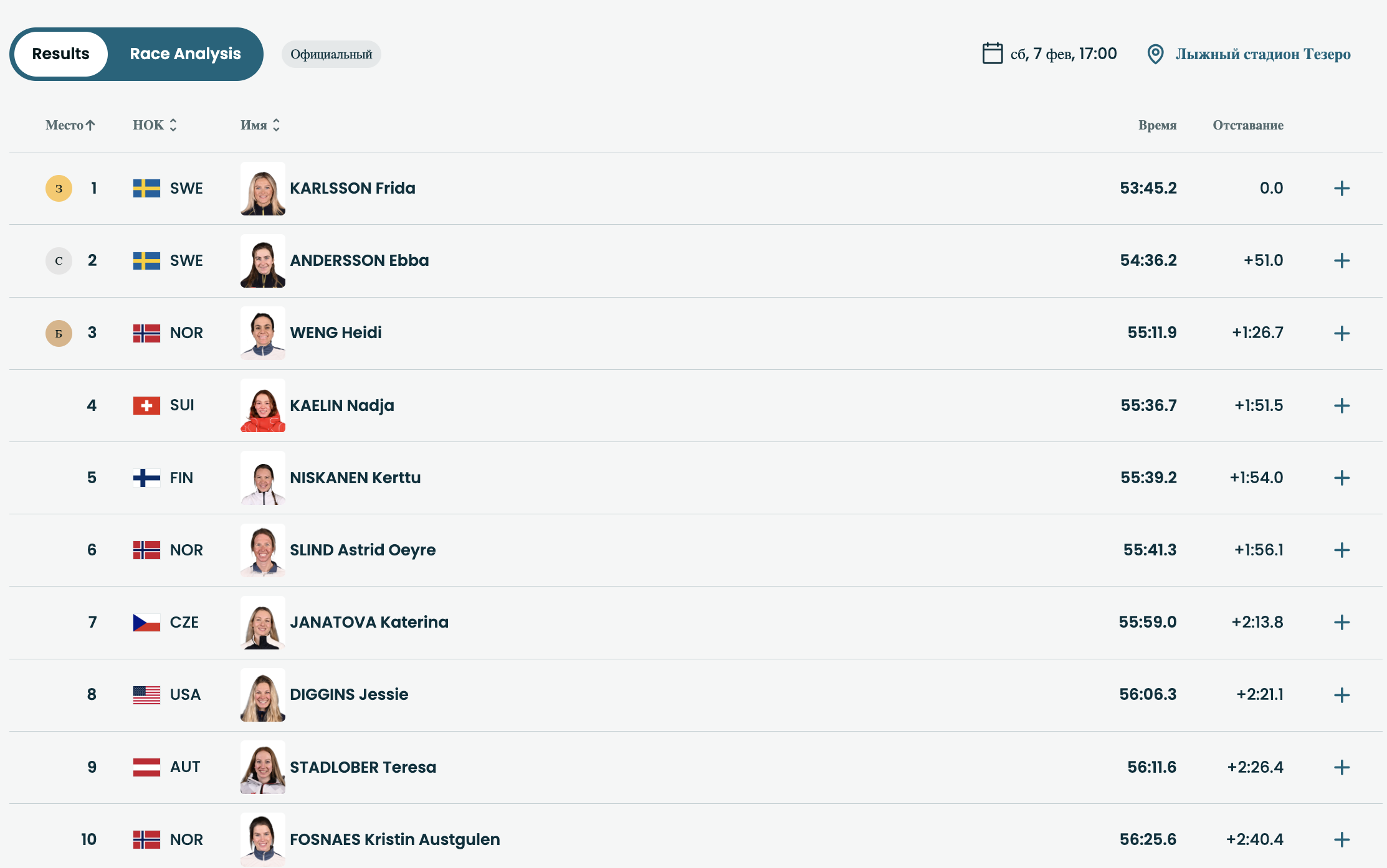 - 🥇 - Фрида Карлссон (Швеция) - 53.45,2,