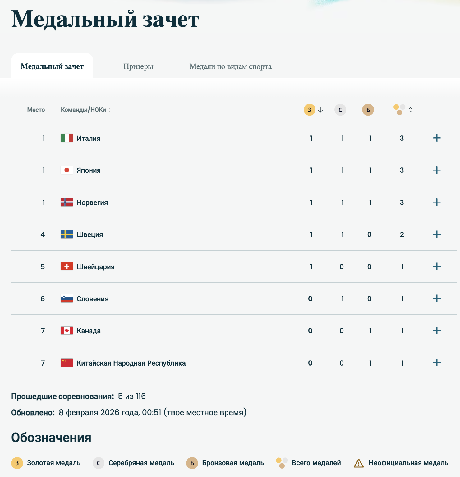 Медальный зачет Олимпиады-2026