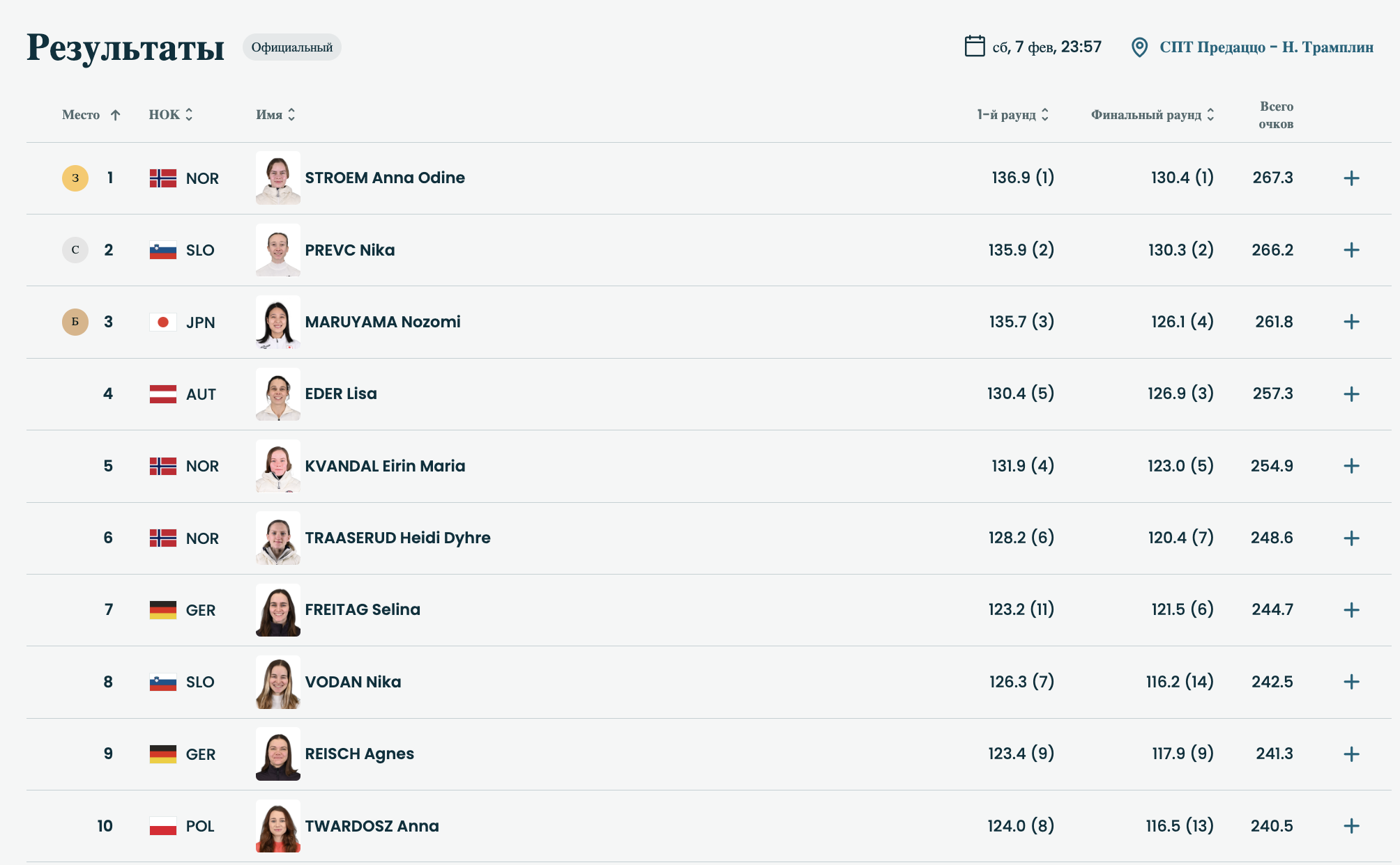 - 🥇 - Анна Один Стрём (Норвегия) - 267.3 балла,