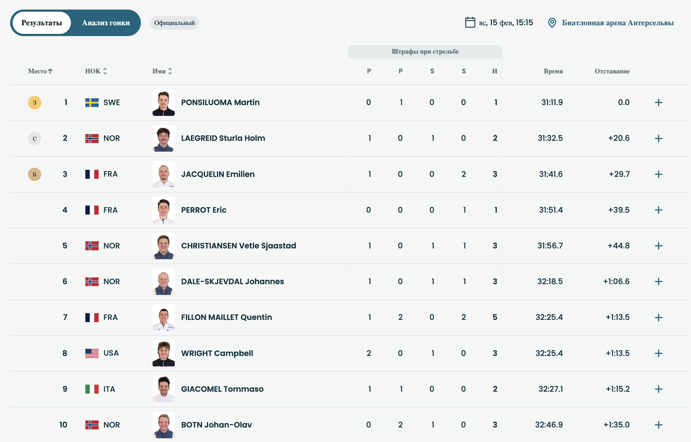 На зимних Олимпийских играх-2026 в Италии завершилась мужская гонка преследования в биатлоне.