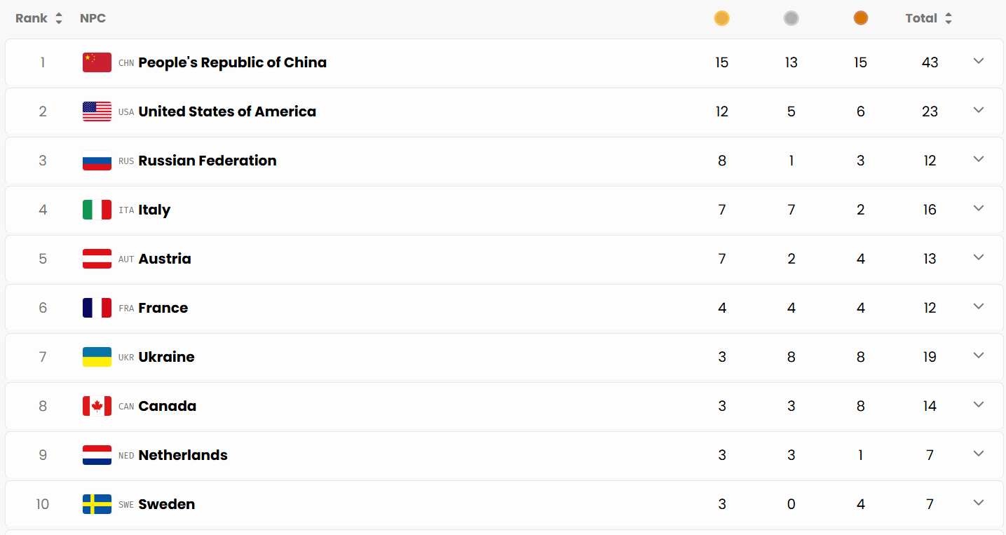Ранее ни одна страна в истории Паралимпиад не завершала игры в топ-3 с шестью атлетами в составе делегации.