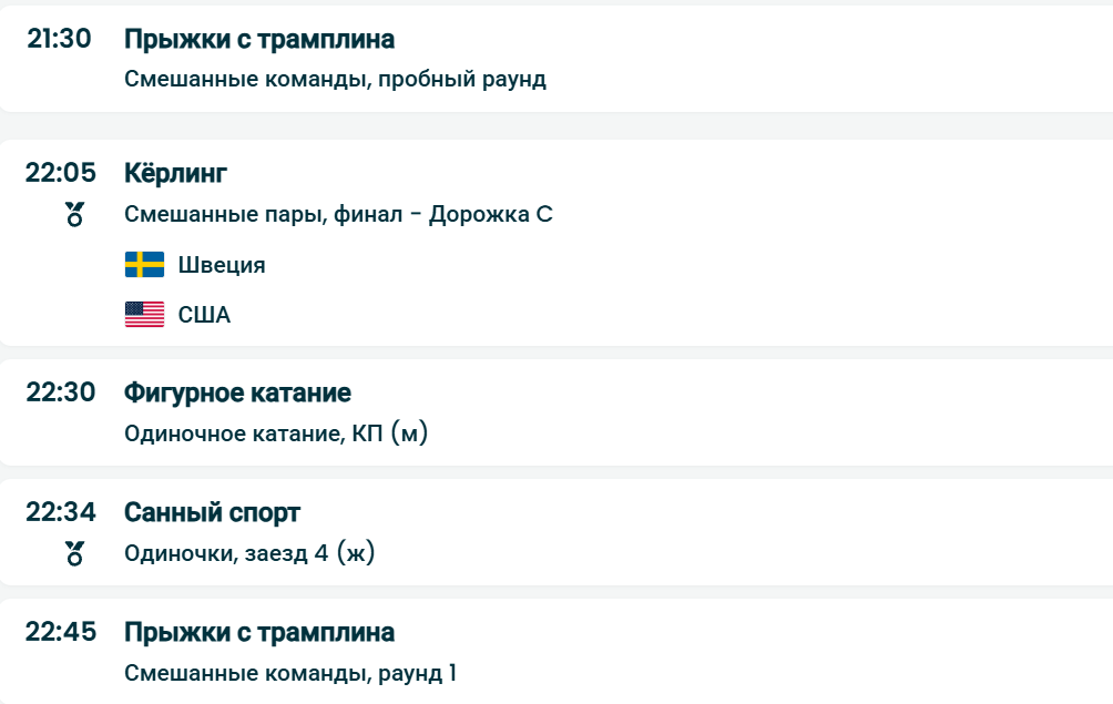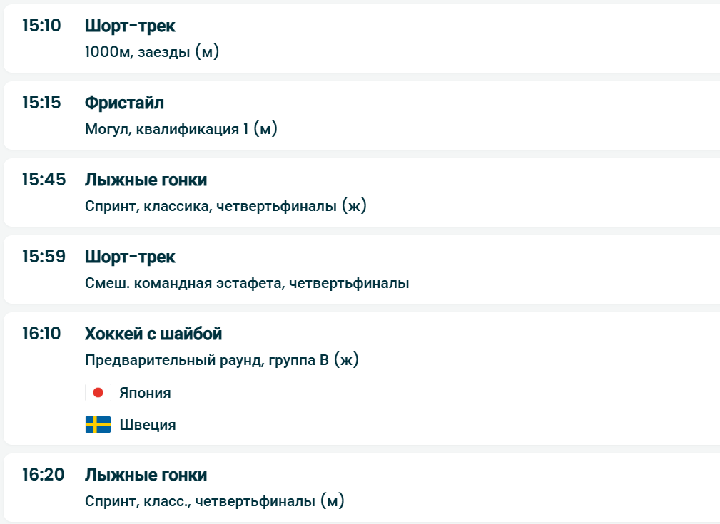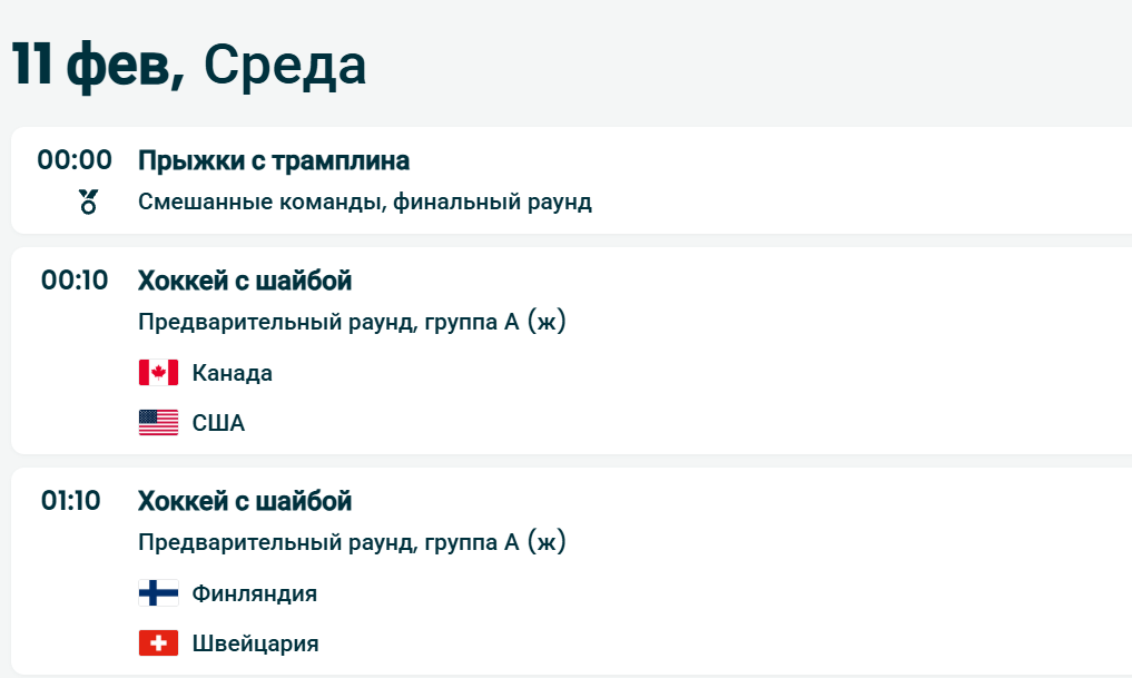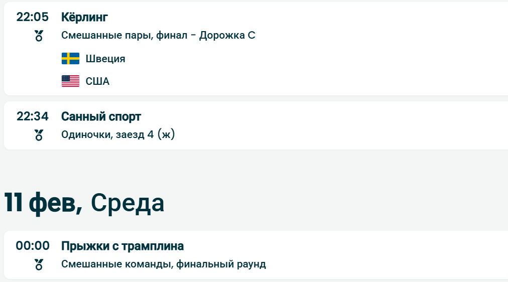 Полная программа соревнований Олимпиады-2026 на 10 февраля