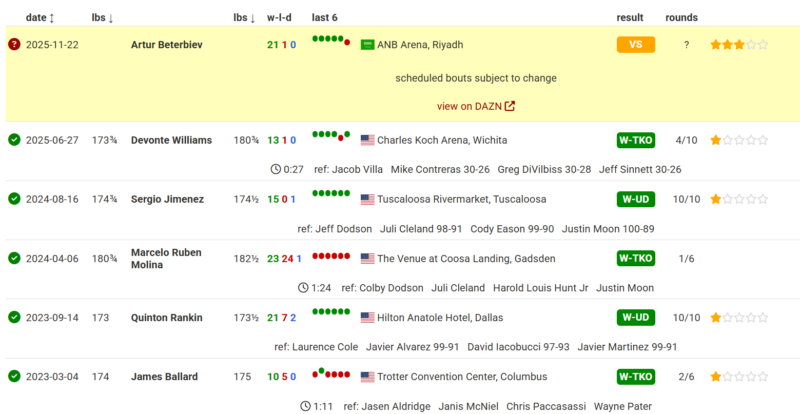 Позднее Бетербиеву предложили бой с Николсоном. Деон выступает в профи с 2016 года. Артур одержал 21 победу, из которых 18 досрочно. Лишь один бой он проиграл нокаутом.