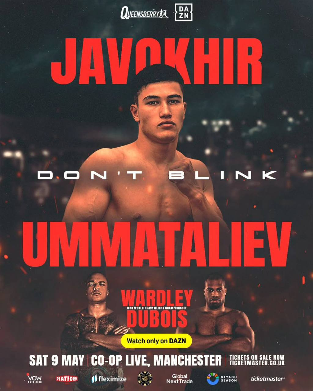 Событие состоится 9 мая в Манчестере (Англия). В главном событии за титул чемпиона мира WBO в супертяжёлом весе подерутся Уордли с Дюбуа.
