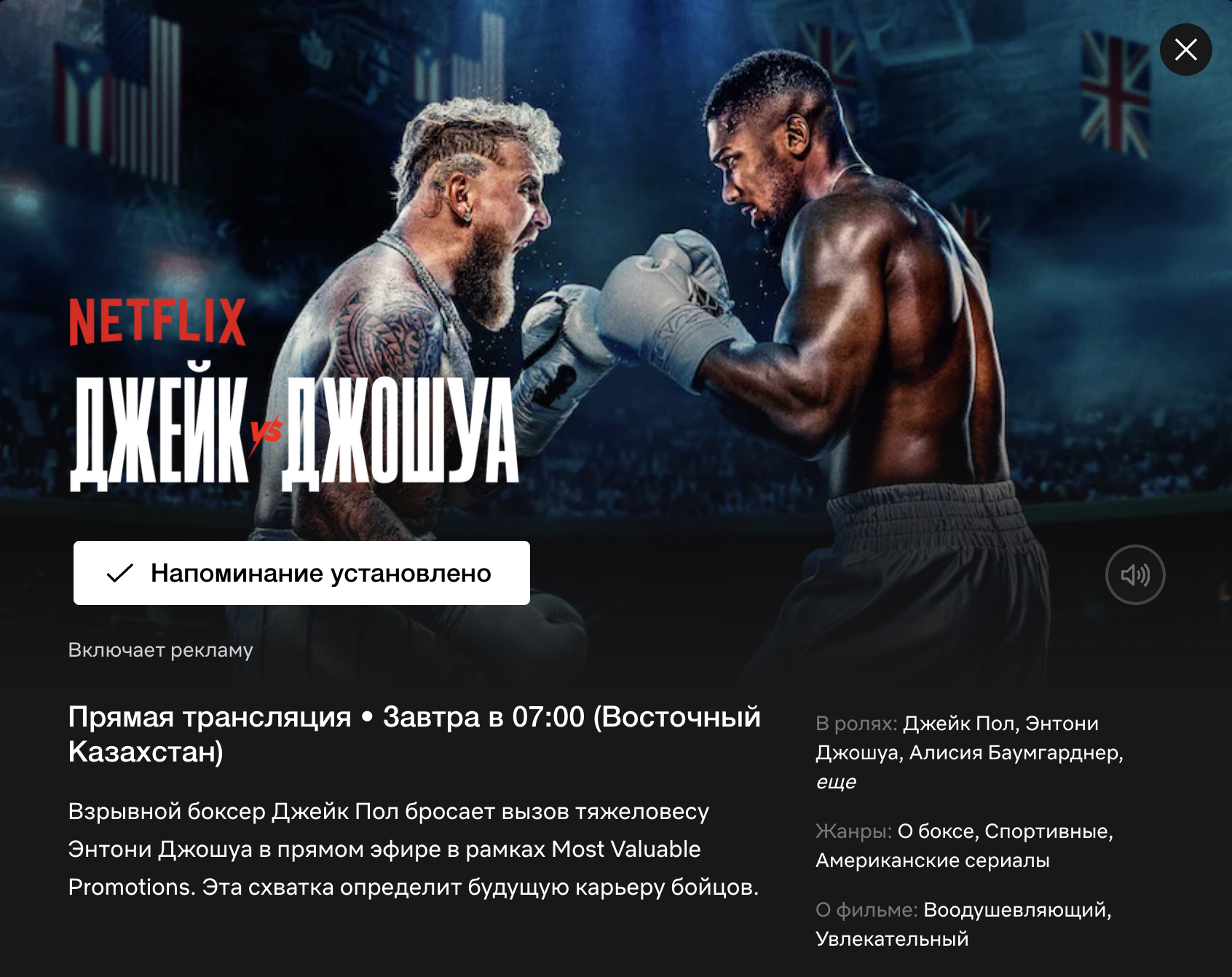 Прямая трансляция боя Джейк Пол - Энтони Джошуа будет только на стриминговой платформе Netflix - включается в любой действующий план подписки без дополнительной оплаты.