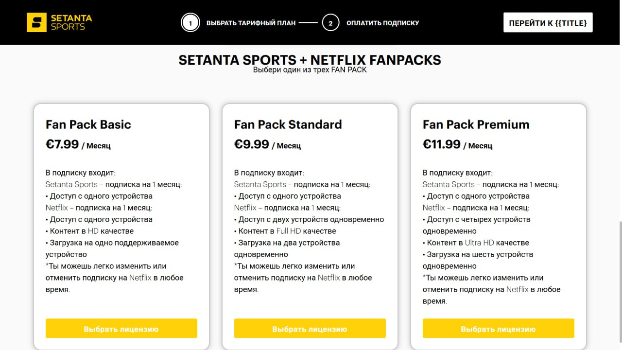 - Нужно зайти на сайт setantasports.com и выбрать один из трех FAN PACK (именно FAN PACK) - стоимость такая же, как у Netflix, но еще получаете доступ на Setanta Sports.
