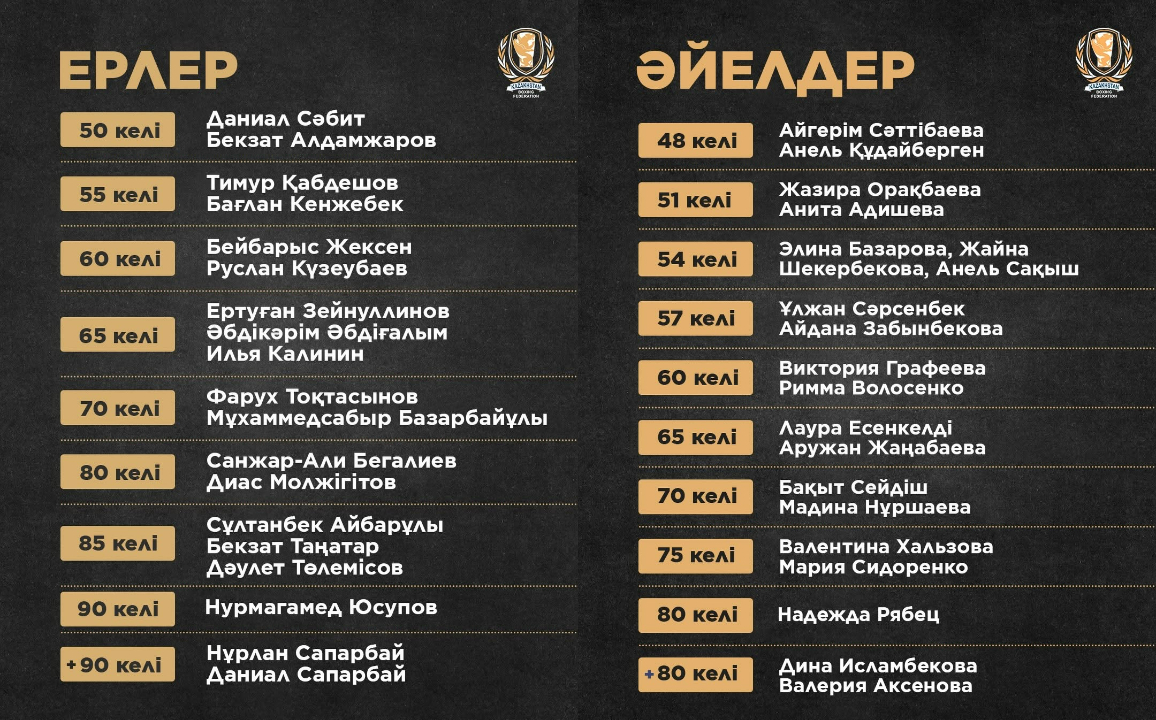 Всего за историю турнира у Казахстана 23 золотых, 34 серебряных и 45 бронзовых медалей. Из текущего состава дважды побеждала Хальзова, а Зейнулинов - действующий чемпион.