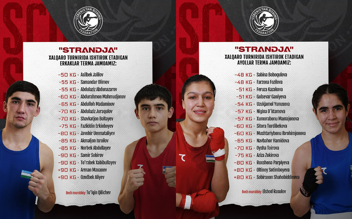 Сборная Узбекистана привезла 30 боксеров - по 15 мужчин и женщин. В мужском составе - чемпионы мира-2025 по версии World Boxing Фазлиддин Эркинбоев и Жавохир Умматалиев.