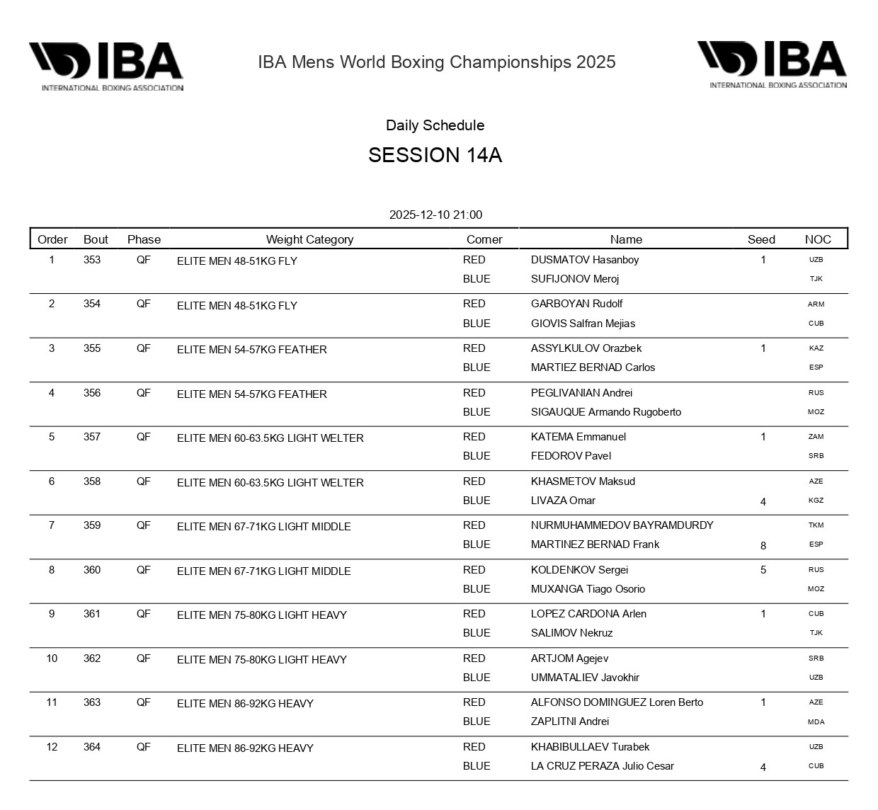 10 декабря. Дневная сессия, 18:00 (время Казахстана). Ринг А: