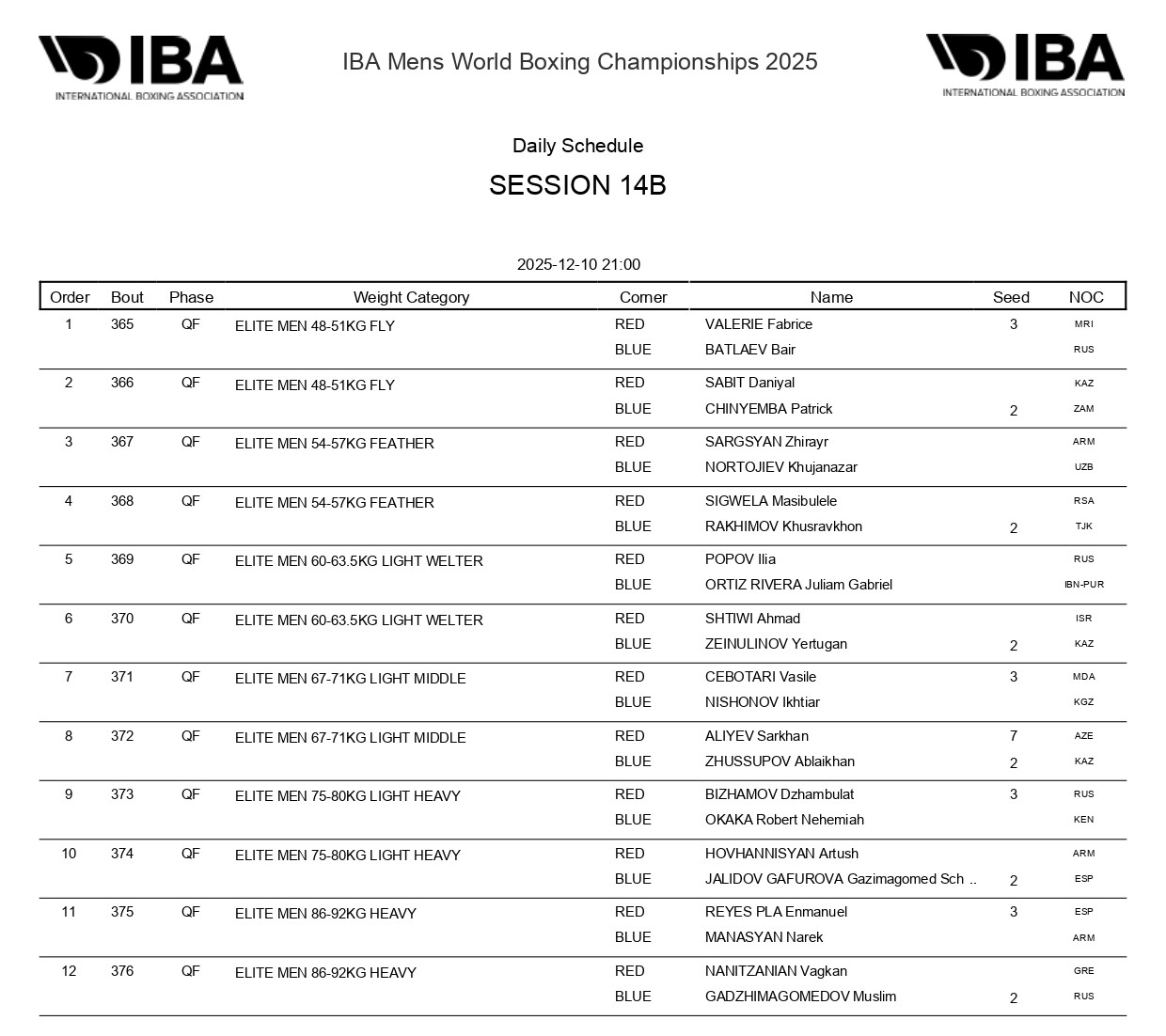 10 декабря. Дневная сессия, 18:00 (время Казахстана). Ринг B: