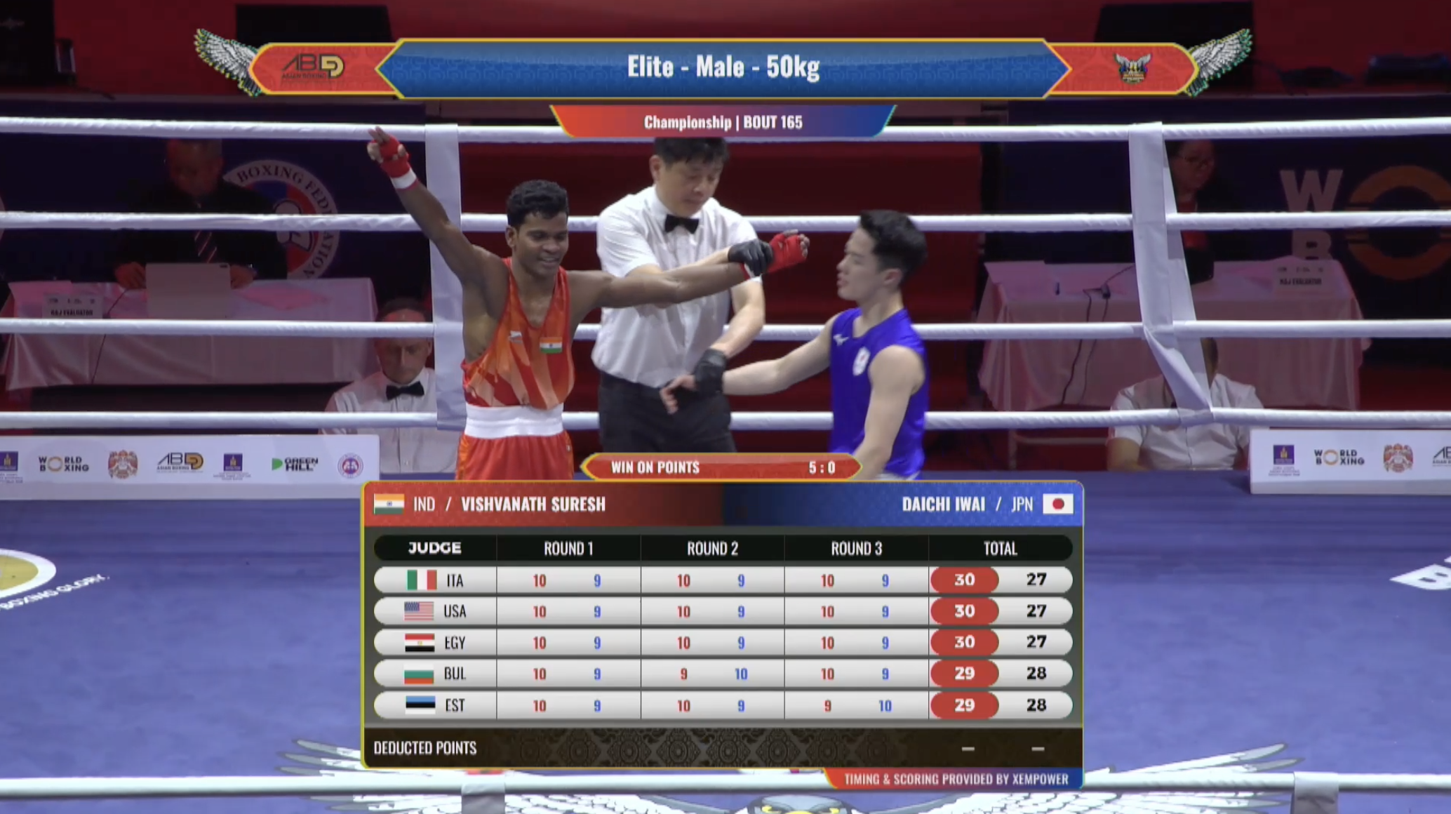 - 50 кг: Вишванат Суреш (Индия) - Даичи Иваи (Япония) - 5:0