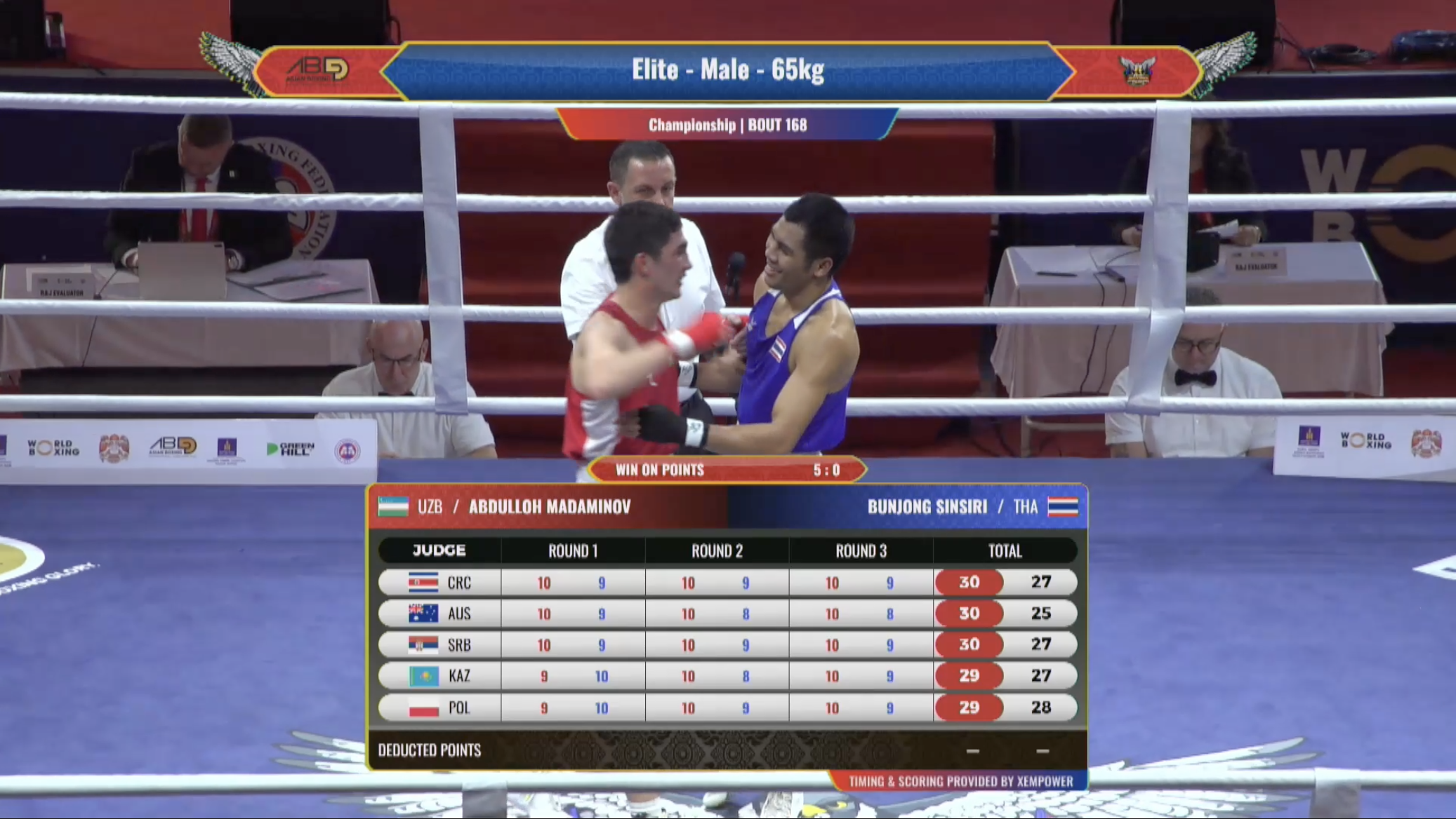 - 65 кг: Абдуллох Мадаминов (Узбекистан) - Бунджонг Синсири (Таиланд) - 5:0