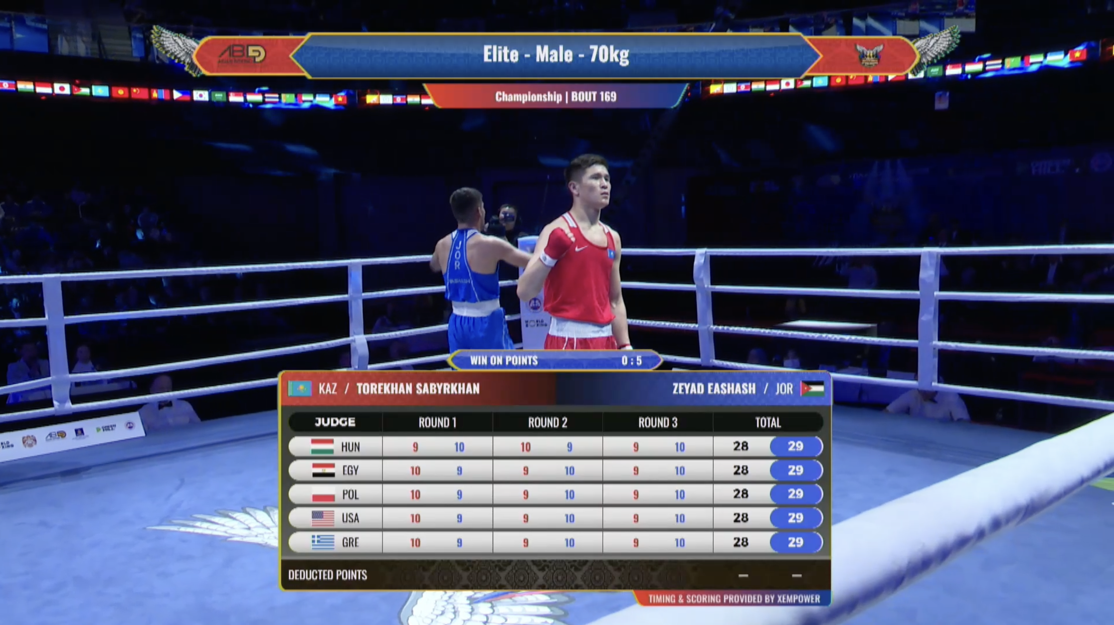 - 70 кг: Торехан Сабырхан (Казахстан) - Зеяд Ишаиш (Иордания) - 0:5