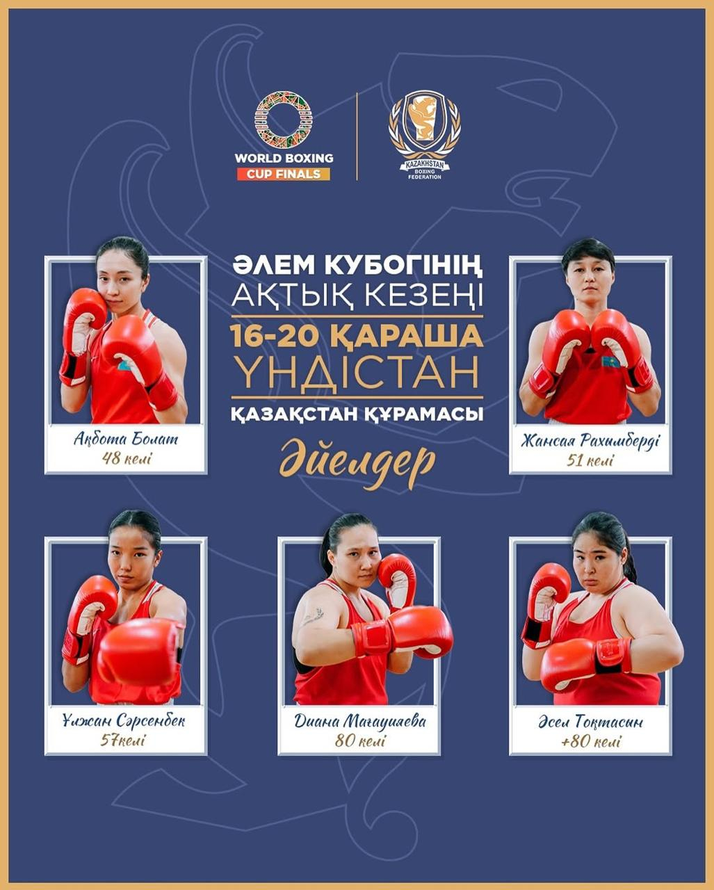 Женская команда представлена еще четырьмя боксершами Жансаей Рахымберди (51 кг), Улжан Сарсенбек (57 кг), Дианой Магауяевой (80 кг) и Асель Токтасын (+80 кг).