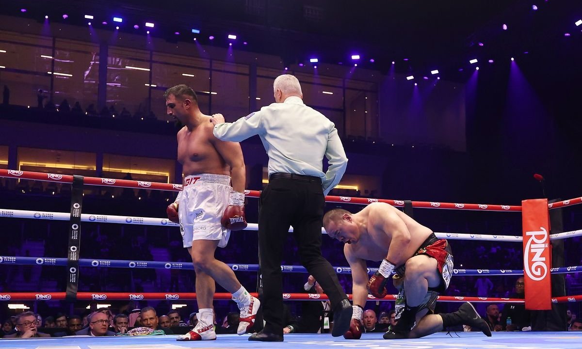 В ночь с 22 на 23 февраля в Эр-Рияде (Саудовская Аравия) состоялся бой за титул временного чемпиона мира по версии WBC в супертяжелом весе. В ринге сошлись китайский нокаутер Чжан Чжилей (27-2-1, 22 КО) и непобежденный немец Агит Кабайел (25-0, 17 КО) сообщает Спорт Шредингера.