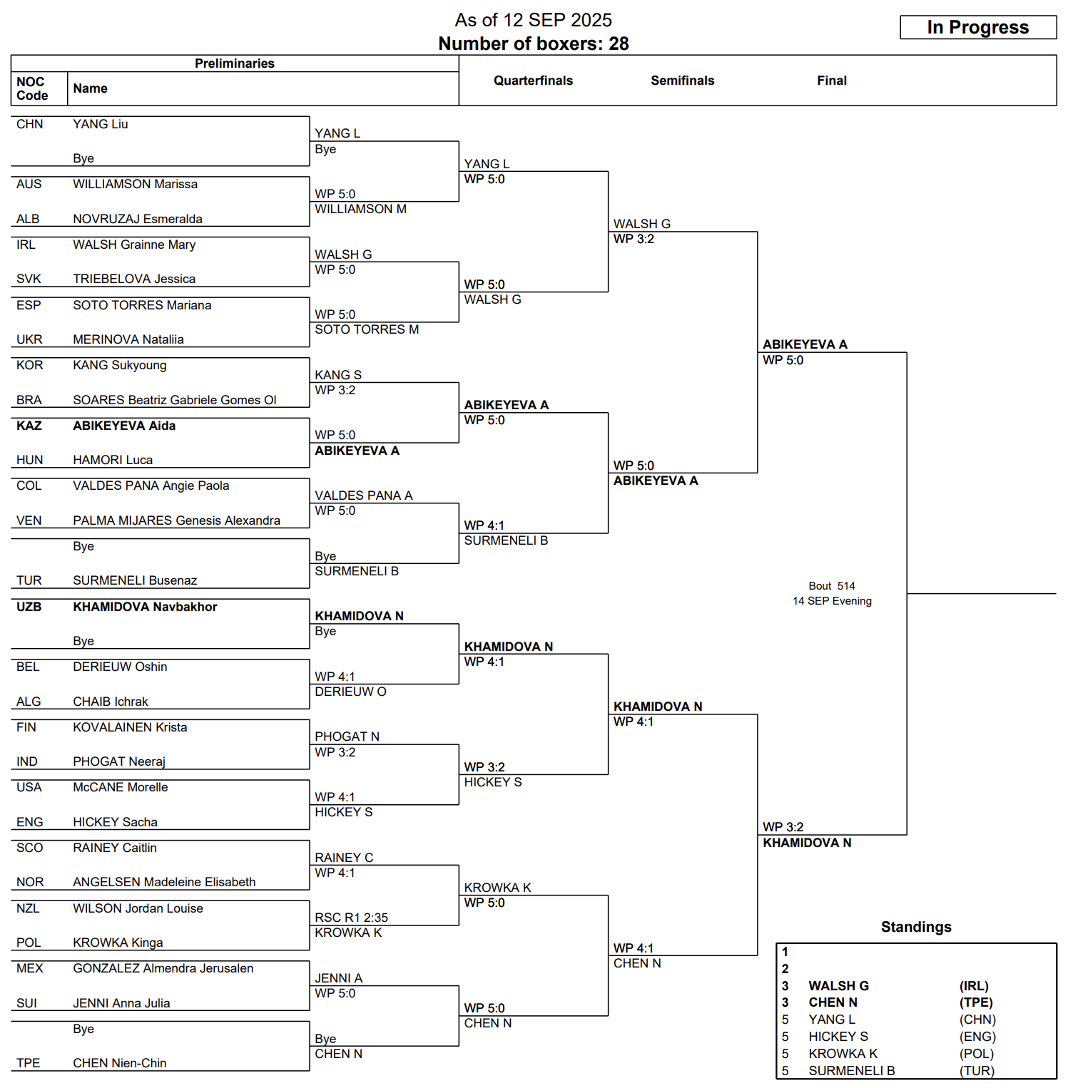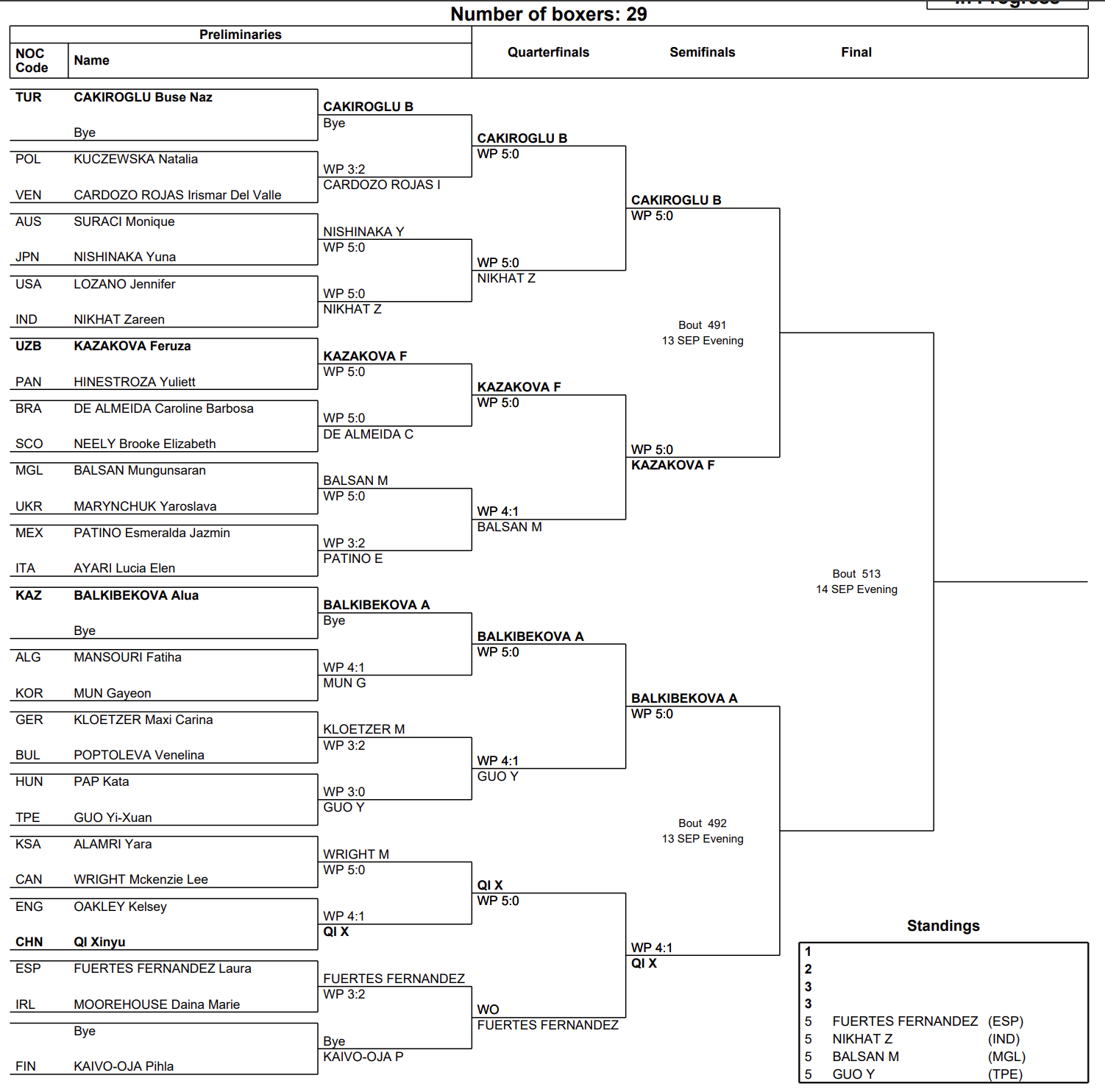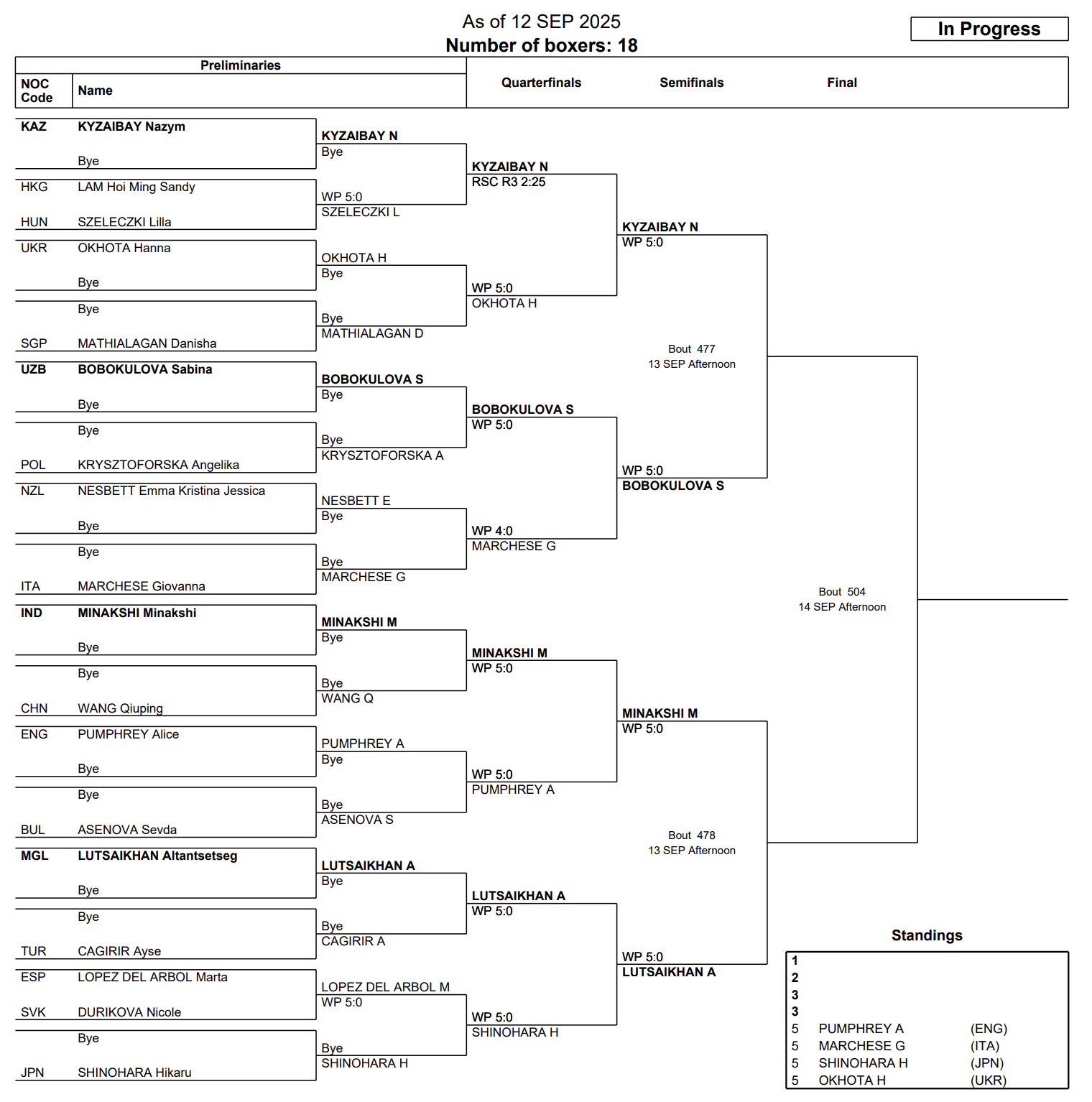 - ✅ Назым Кызайбай vs Сабина Бобокулова (Узбекистан)