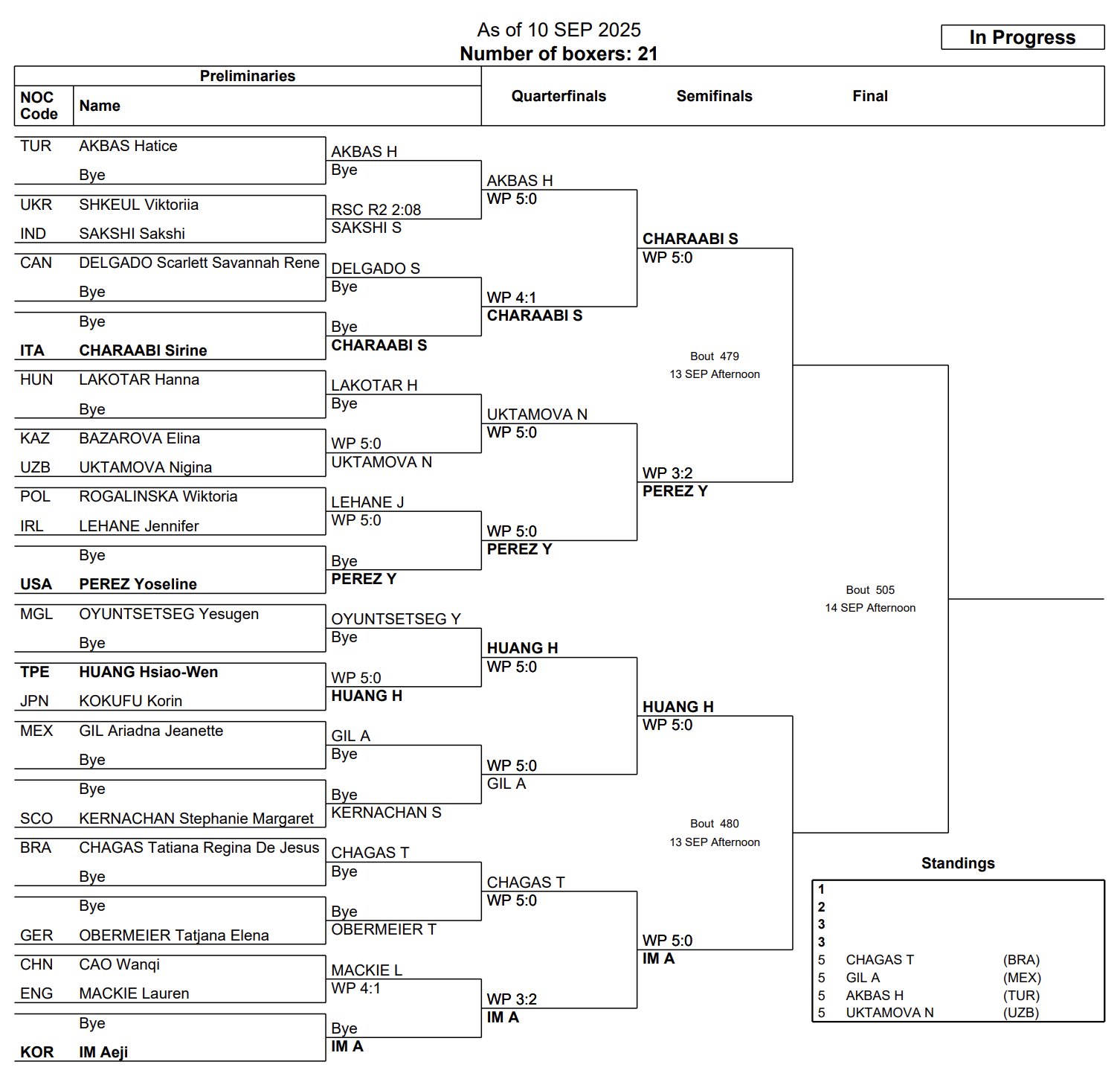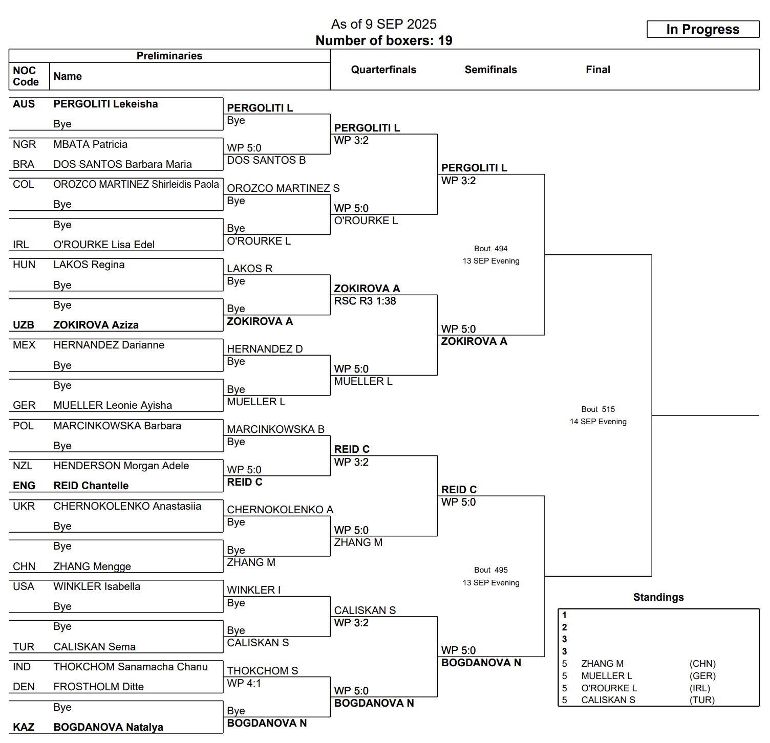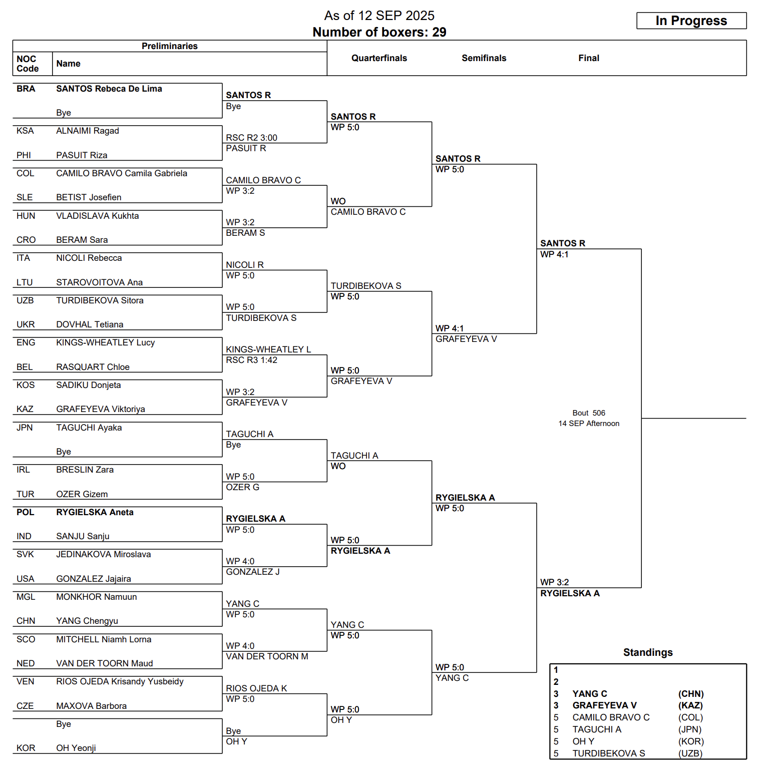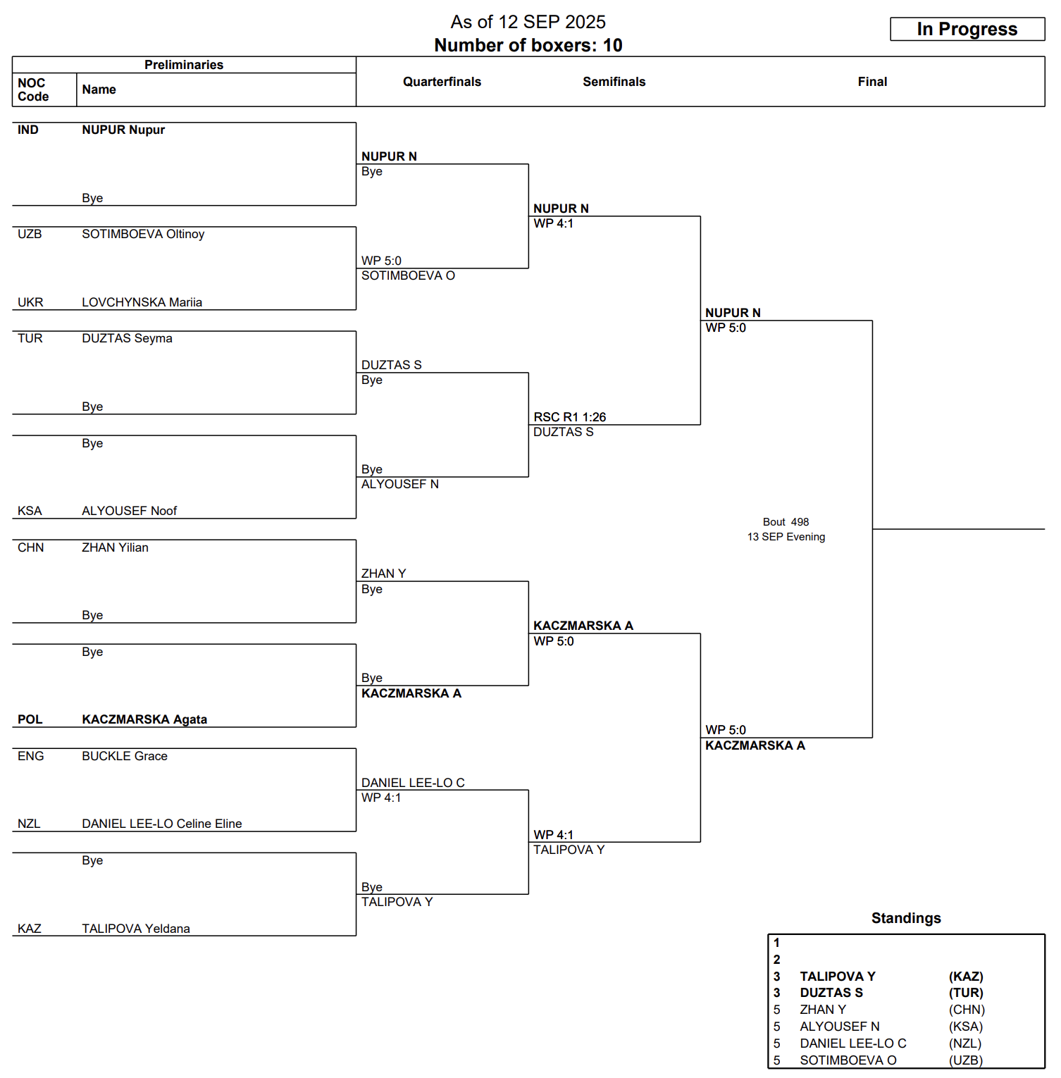 - ✅ Назым Кызайбай vs Сабина Бобокулова (Узбекистан)