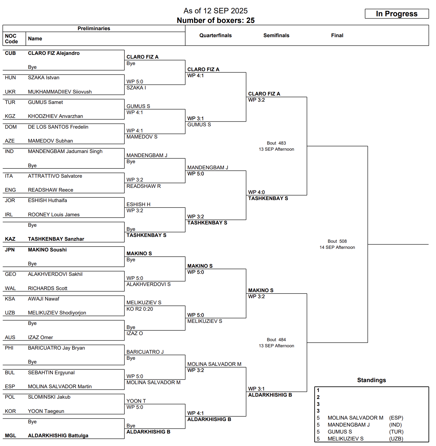 - ✅ Санжар Ташкенбай - Джадумани Сингх Манденгбам (Индия)