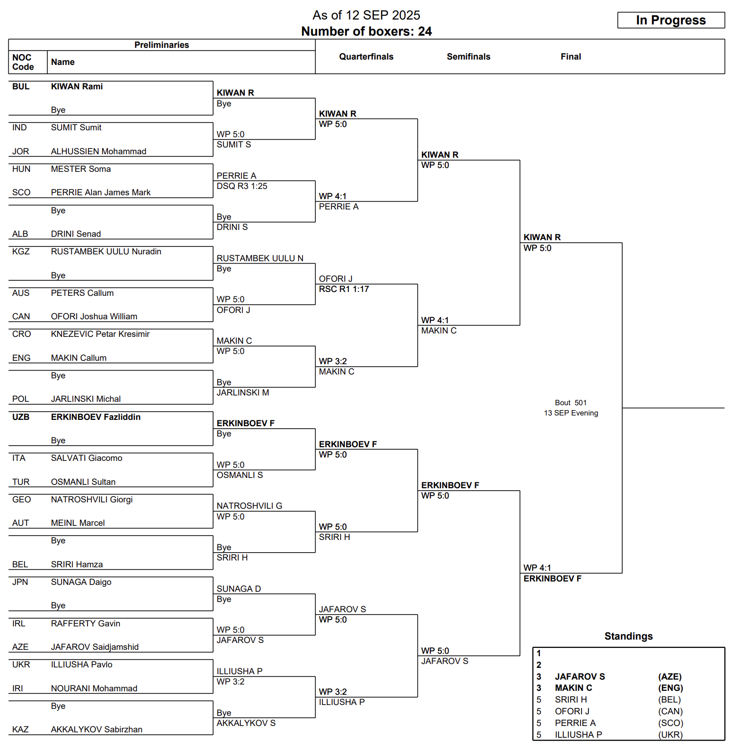 - ❌ Нурбек Оралбай - Жавохир Умматалиев (Узбекистан)