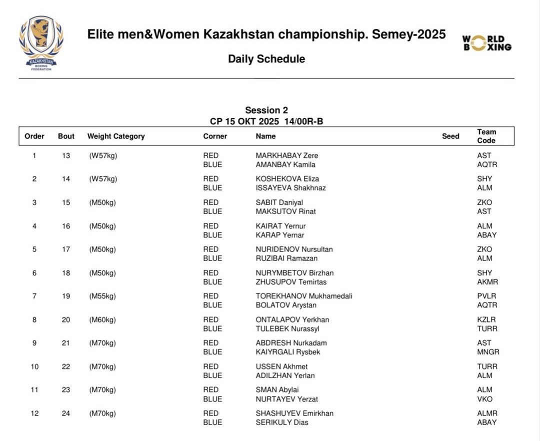- Эмирхан Шашуев (Алматинская область) vs Диас Серикулы (Абайская область)