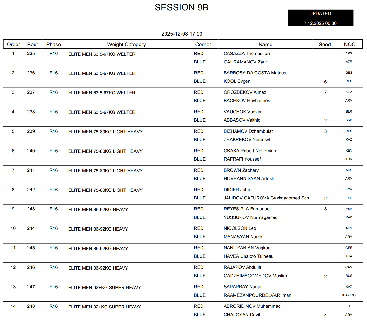 8 декабря. Дневная сессия, 18:00 (время Казахстана). Ринг B: