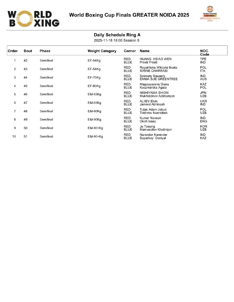Сегодня, 18 ноября, в Нью-Дели (Индия) состоится третий соревновательный день финального этапа Кубка мира-2025 от World Boxing, сообщает Спорт Шредингера.