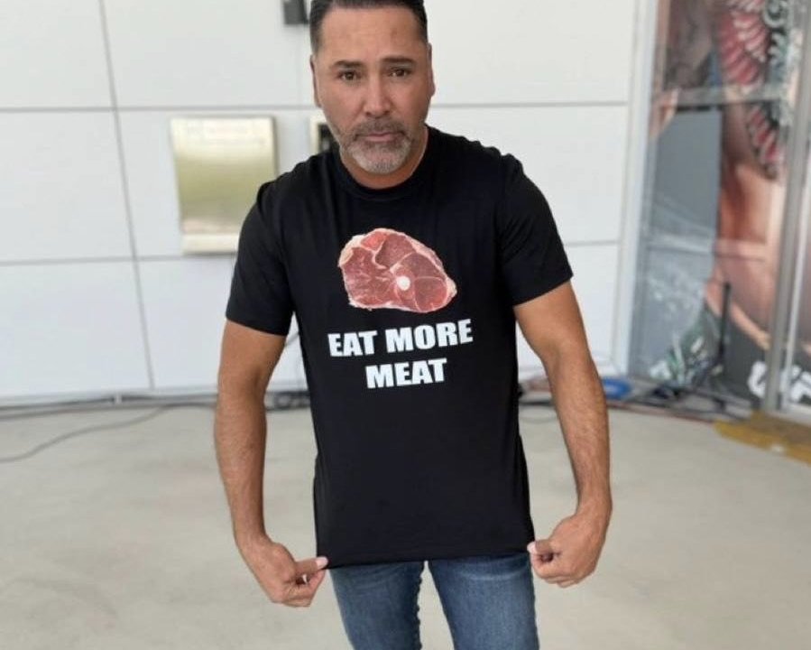 Промоутер пришел на взвешивание в футболке "Ешь еще больше мяса". Де Ла Хойя представляет интересы Хайме Мунгии, а с Канело работал с 2010 по ноябрь 2020 года.