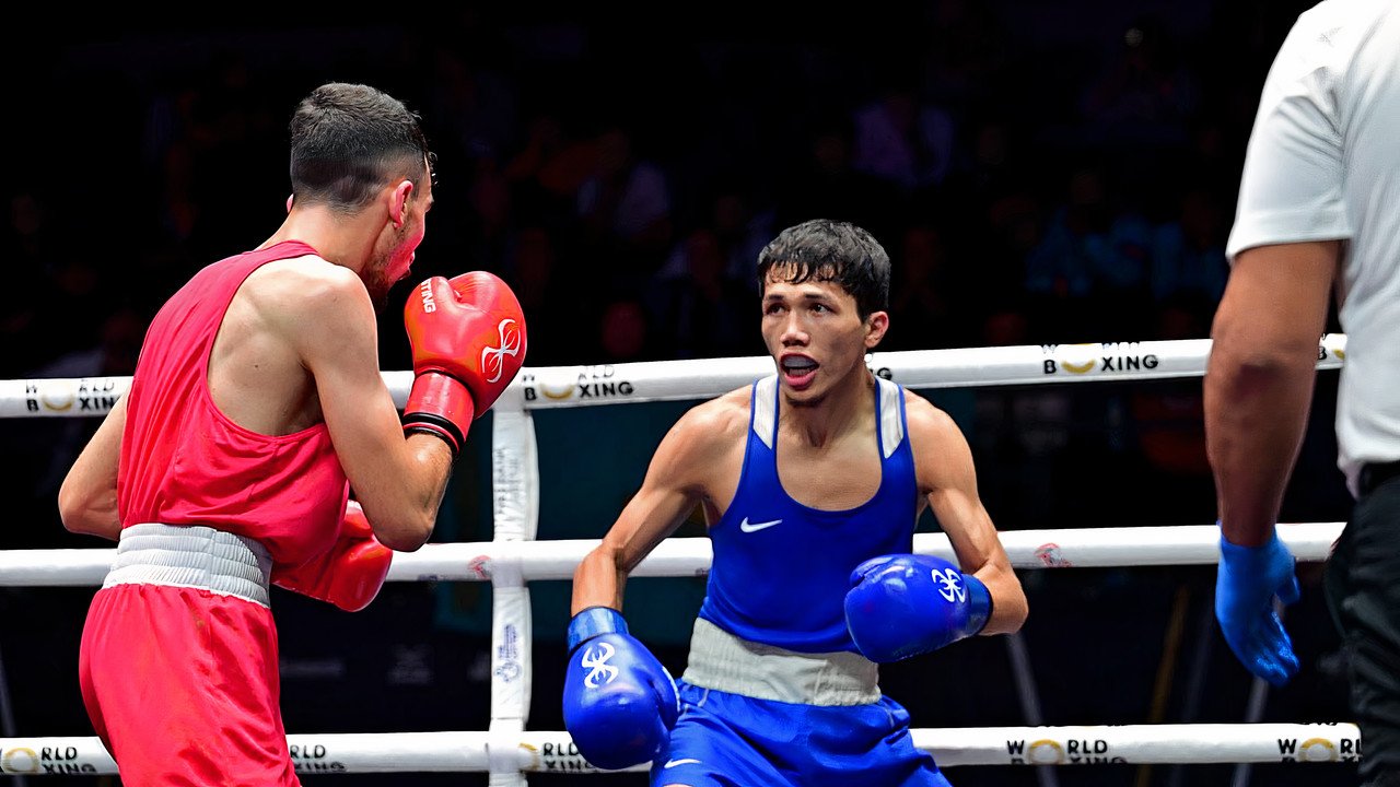 Видео боя Санжара Ташкенбая в 1/8 финала ЧМ-2025 по боксу