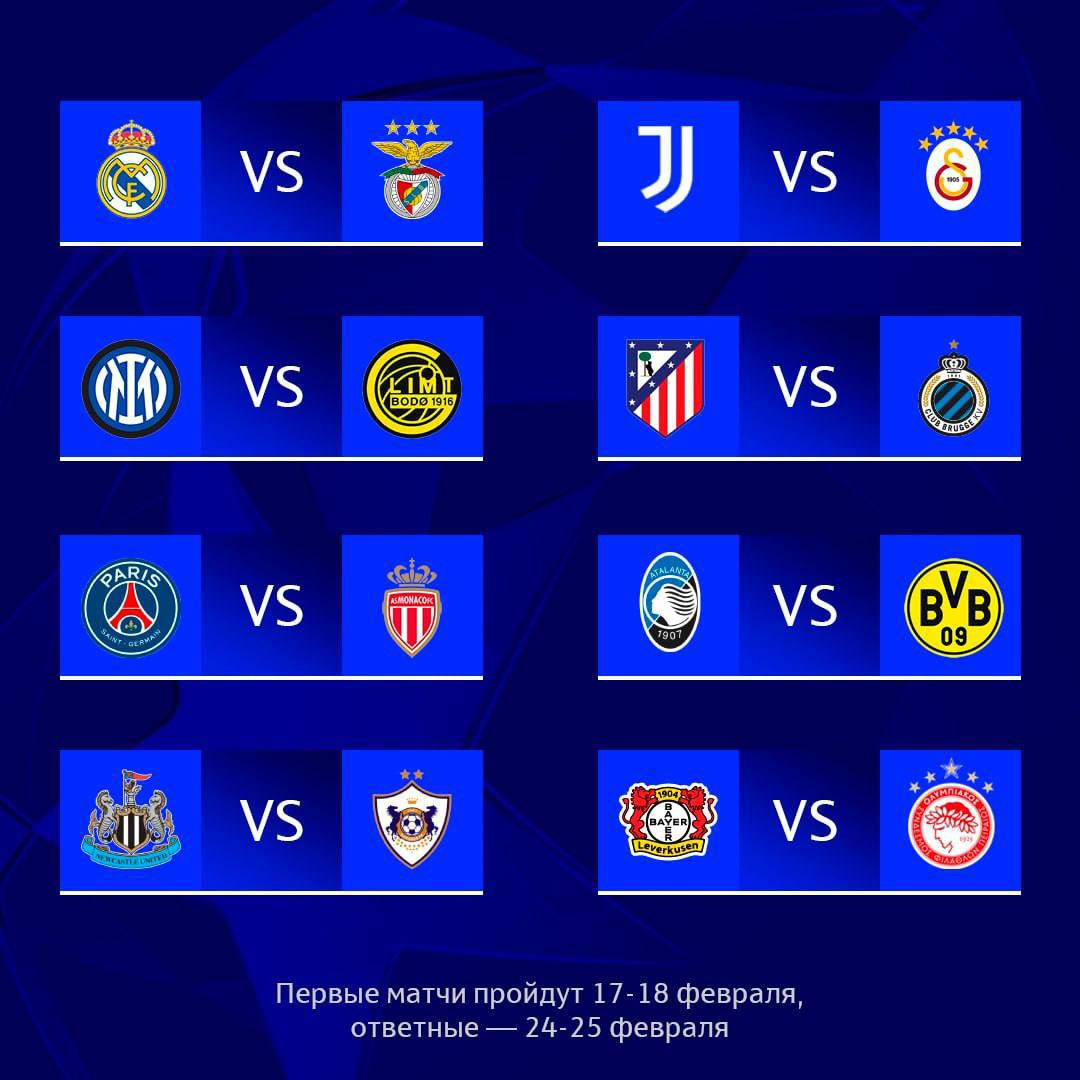 Стыковые матчи пройдут 17-18 февраля и 24-25 февраля. В стыках "Реал" сыграет с "Бенфикой", от которой пропустил гол вратаря Анатолия Трубина, а "Карабах" ждет поездка в Англию - к "Ньюкаслу".