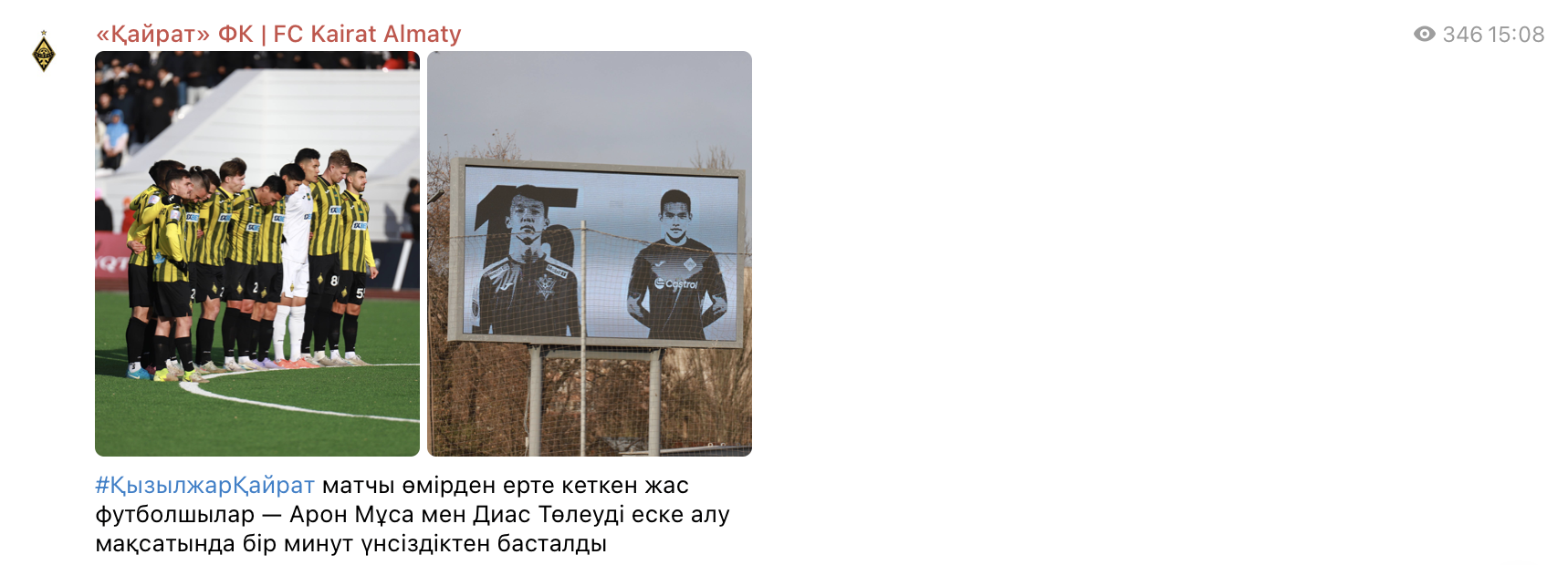 От имени Казахстанской федерации футбола выражаем искренние соболезнования родным, близким и партнёрам по команде. Это невосполнимая утрата для всего казахстанского футбола.