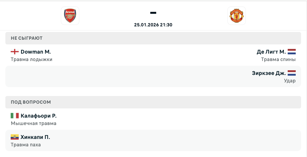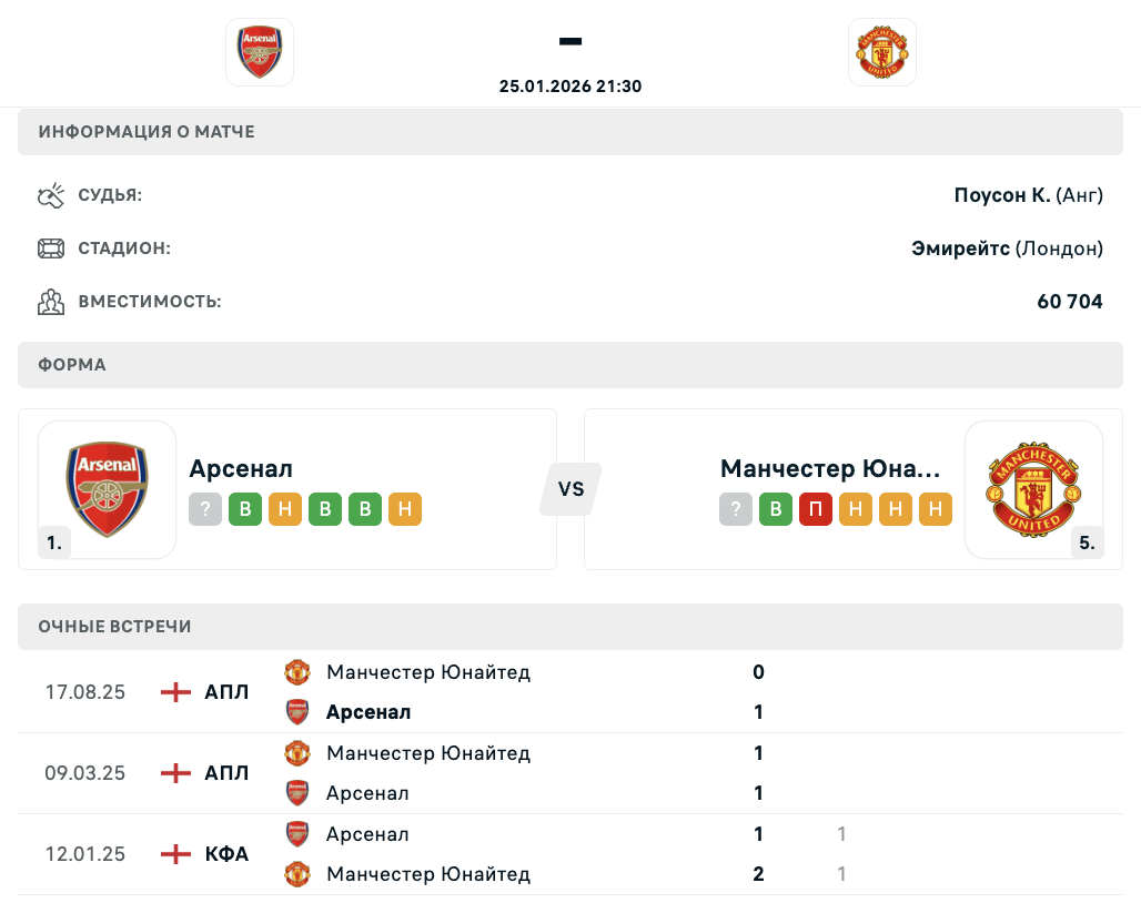 25 января состоится матч 23-го тура английской Премьер-лиги сезона-2025/2026, в котором "Арсенал" на своём поле примет "Манчестер Юнайтед", сообщает Спорт Шредингера.