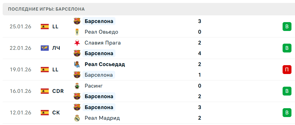 "Барселона" подходит к матчу в следующей форме - четыре победы в пяти последних матчах.