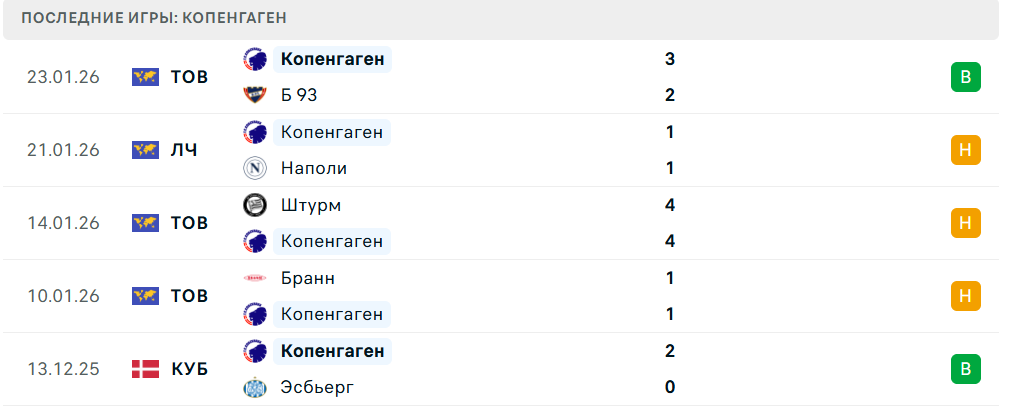 "Копенгаген" чередует ничьи и победы, но стоит учитывать, что три из пяти последних матчей были товарищескими - чемпионат Дании ушел на зимнюю паузу.