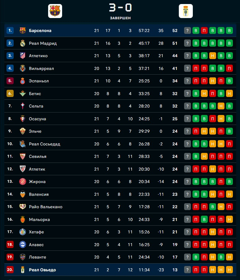"Барселона" разгромила "Овьедо" в матче чемпионата Испании, сообщает Спорт Шредингера.