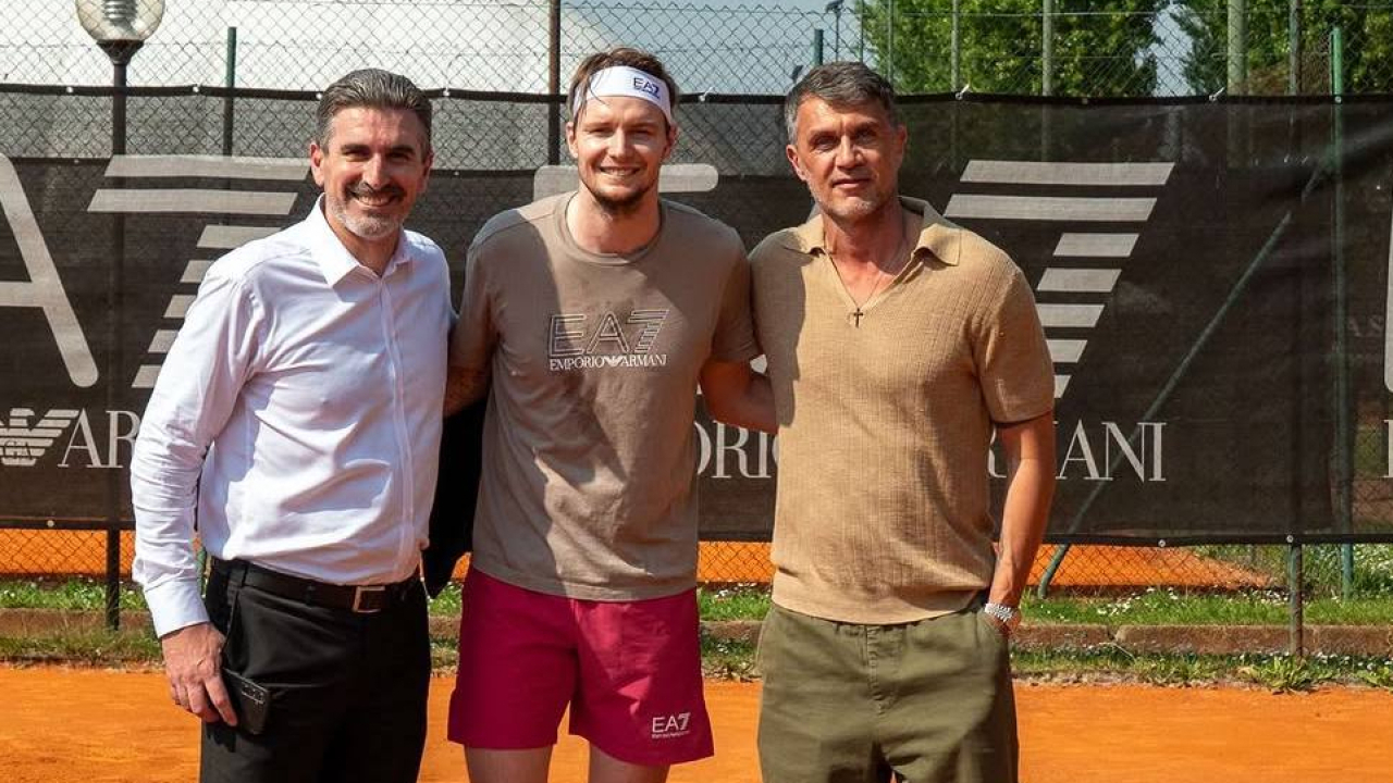 Бублик встретился с победителем Лиги чемпионов в Италии Фото: Александр Бублик с Паоло Мальдини (справа)