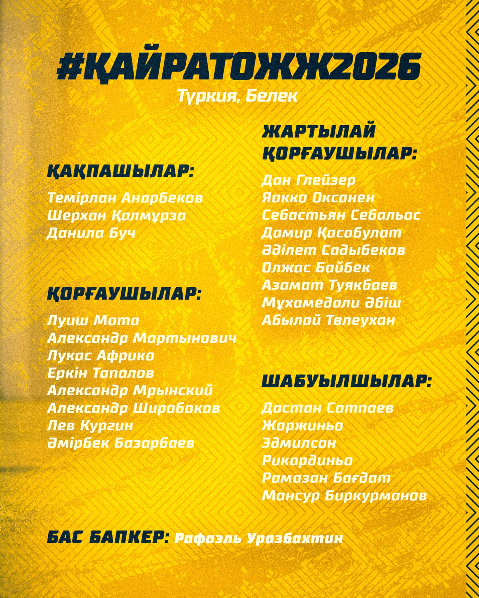 СОСТАВ "КАЙРАТА" НА СБОРЫ В ТУРЦИЮ