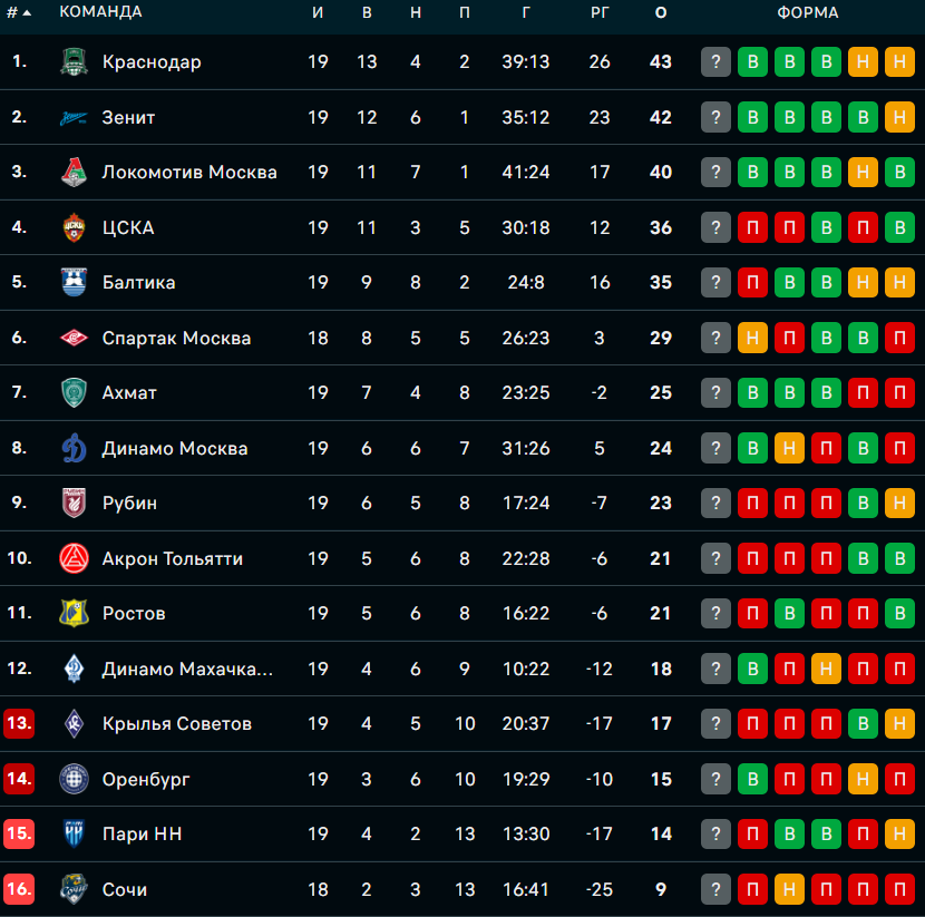 На данный момент московский клуб после 19 туров занимают десятое место с 24 баллами в своем активе.