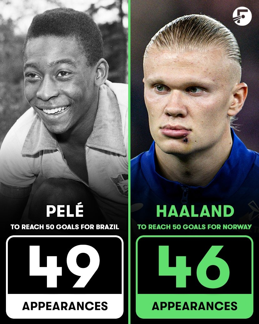 Также отмечается, что Эрлинг Холанд забил 50 голов за сборную быстрее, чем Пеле.