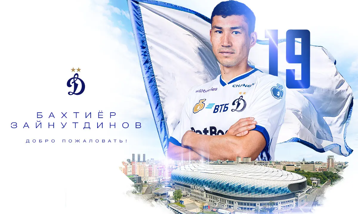 Полузащитник сборной Казахстана Бахтиер Зайнутдинов официально стал игроком московского "Динамо", сообщает Спорт Шредингера.