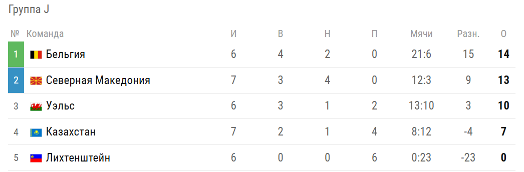 В данный момент казахстанцы занимают пятое место в группе, набрав семь очков.