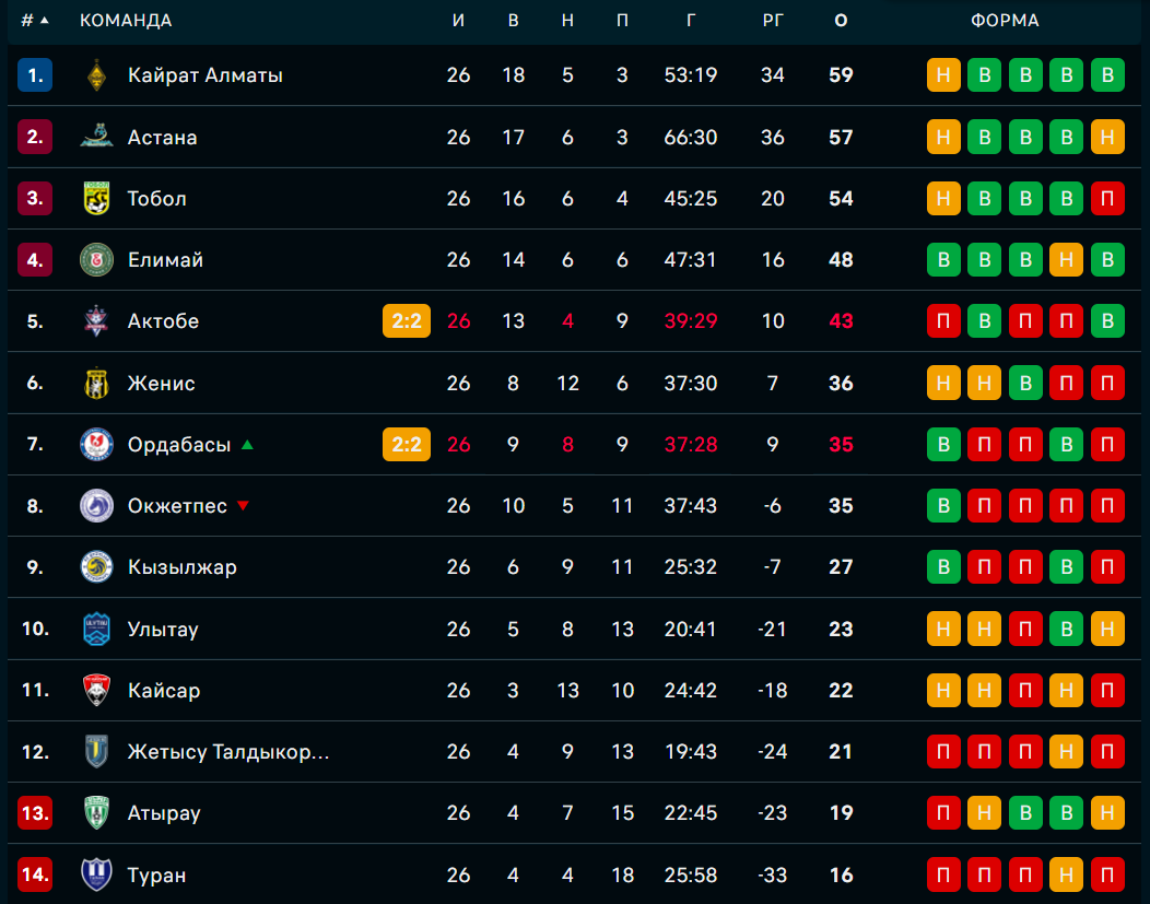 Таким образом, "Кайрат" набрал 59 очков и стал чемпионом Казахстана. Таким образом, алматинский клуб защитил свой прошлогодний титул и заработал право на участие в следующем сезоне Лиги чемпионов. "Астана" с отставанием в два балла оказалась на втором месте и сыграет в Лиге конференций. Компанию столичному коллективу составят ставший третьим "Тобол" и четвертым "Елимай".